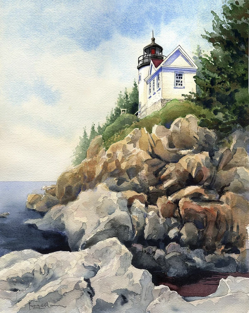 Artist James Mann's original watercolor painting of this historic Maine lighthouse is available as a quality matted print in two sizes that fit standard frames : 5x7 print (1st photo) is matted to 8x10 inches. 8x10 print (2nd photo) is matted to 11x14 inches. Printed with inkjet pigment inks on heavy opaque stock. Off-white matte; backing board with label. All acid-free. Sealed in a clear acetate sleeve. Please note: If you order multiple prints from our store that we can ship together, we will refund the portion of shipping charges that exceeds our cost for postage and materials. All prints are made to order, so we can provide as many copies as you want. Just let us know and we will revise the listing accordingly.