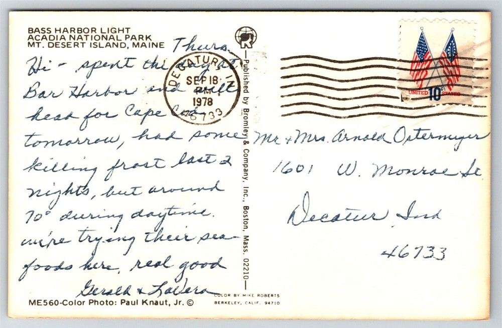 Bass Harbor Light Acadia National Park Mt Desert Island ME Postcard C1960 G20 Thank you for visiting! This is a standard size postcard, 3.5" X 5.5". In stock, usually ships within 24 hours of your purchase. Please ask questions if you are unsure about anything. Our goal is for your complete satisfaction with the postcard and your experience. Check all my other listings in my store. RETIREDWITHBOOKS Powered by SixBit's eCommerce Solution