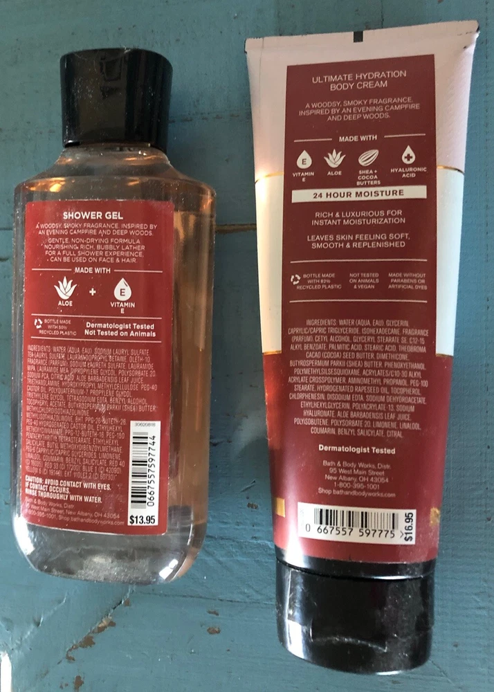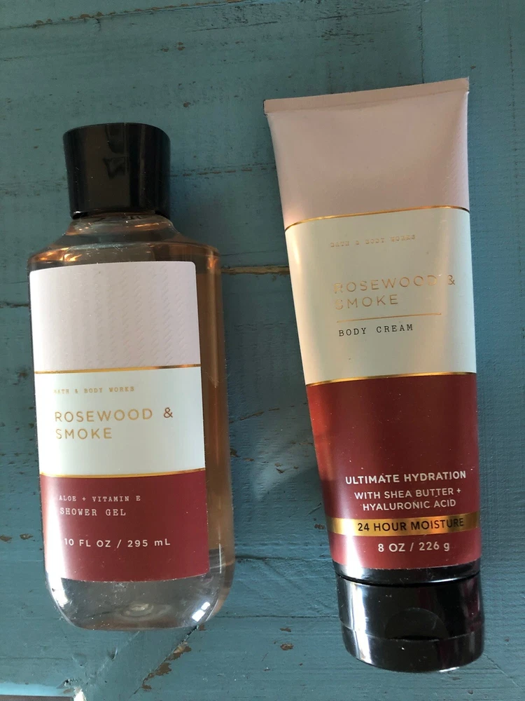 Bath & Body Work Rosewood &Smoke Body Cream 8oz & Shower Gel 10oz Set New