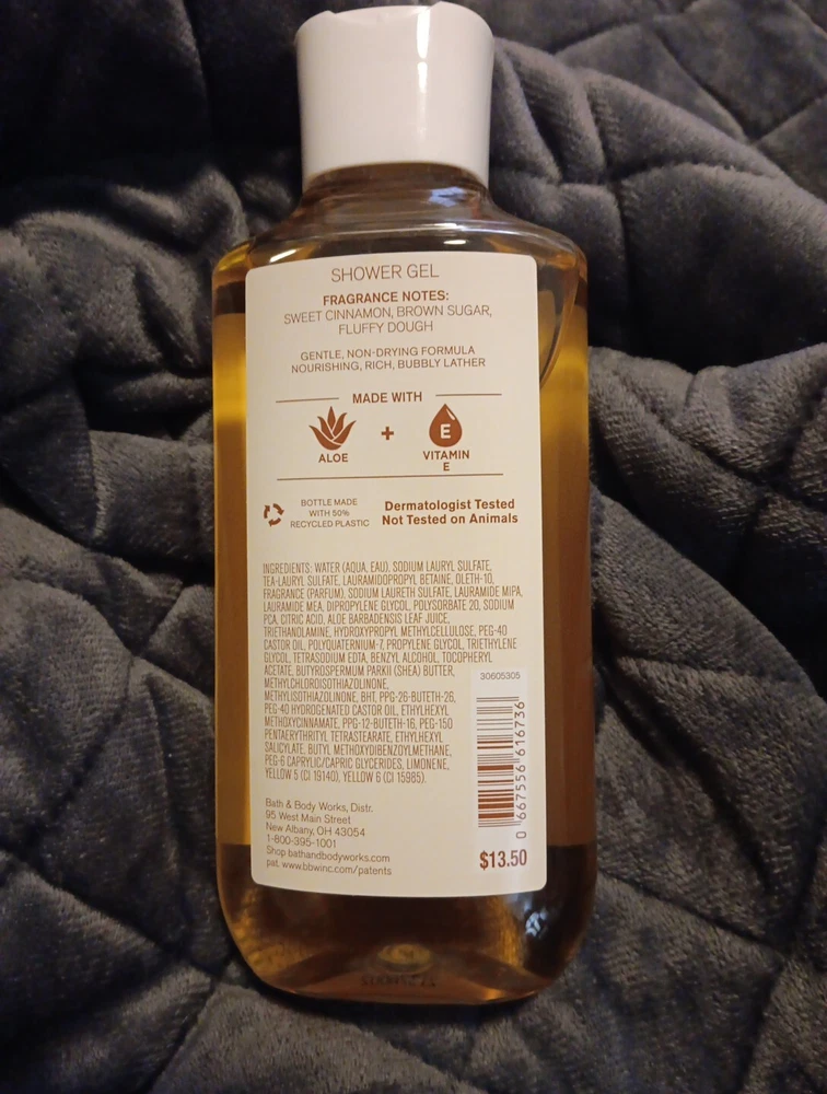 Type:Shower GelScent:Cinnamon Donut SwirlDepartment:UnisexFormulation:GelIngredients:Vitamin E, AloeVolume:10 fl ozBody Area:BodySize:RegularBrand:Bath & Body Works