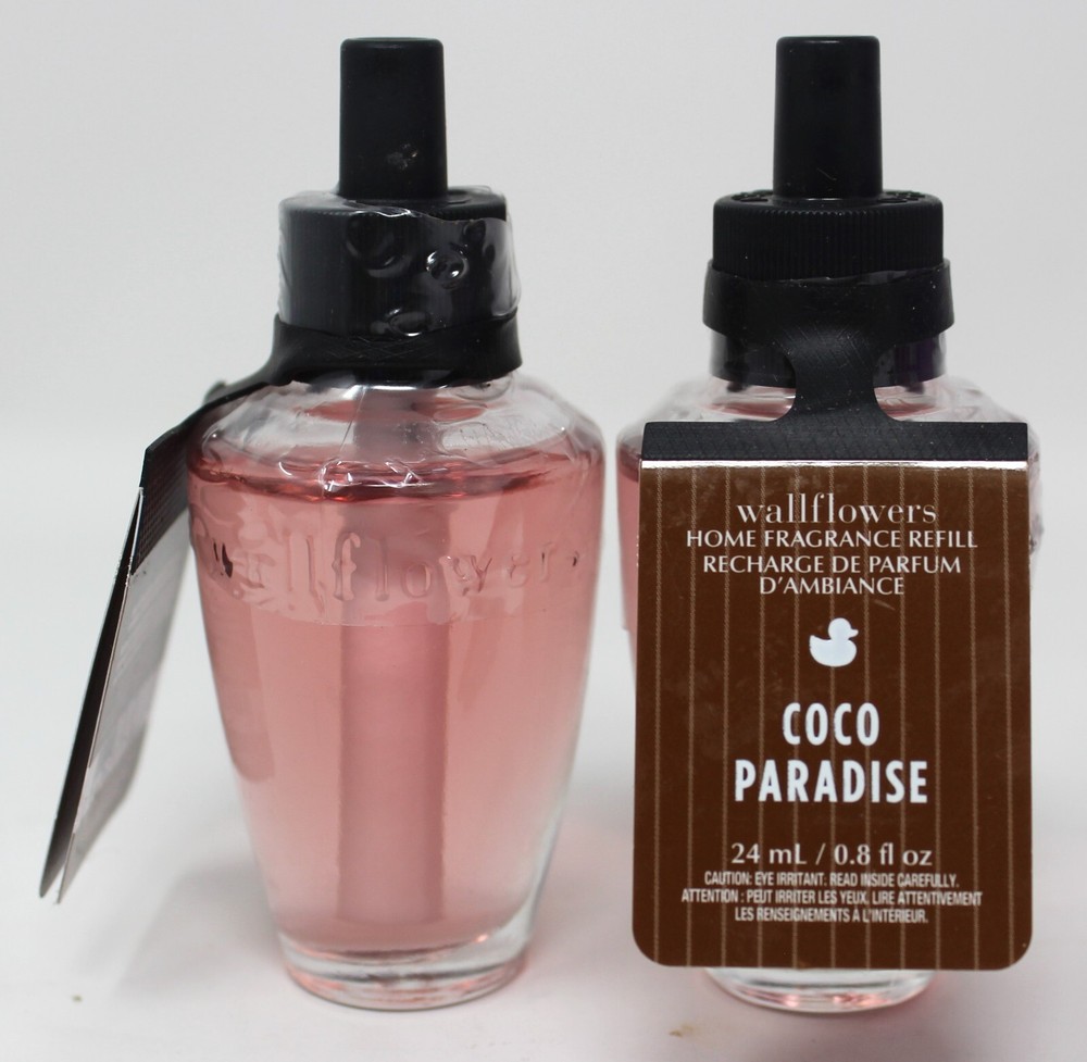 <div style="text-align:center"><img src="http://ti2.auctiva.com/sw/java.gif" border="0"><br><table align="center"><tr><td><a style="text-decoration:none" href="http://emporium.auctiva.com/Dimpl28" target="_blank"><img src="http://ti2.auctiva.com/sw/browse2.gif" border="0"></a></td><td height="21px" valign="middle" align="center"><font face="arial" size="2"><b><a href="http://emporium.auctiva.com/Dimpl28" target="_blank">Dimpl28</a> Store</b></font></td></tr></table></div> <img src="http://ti2.auctiva.com/web/aswCredit.gif" border="0"><br><a href="http://www.auctiva.com/?how=scLnk0" target="_blank"><img src="http://ti2.auctiva.com/images/sc1line0.gif" border="0"></a> Bath & Body Works Coco Paradise Wallflowers Plug In Refill Bulb Lot of 2 We have been selling on eBay since 2002 and have always had a good standing with eBay due to our integrity. All our products are 100% authentic. To sell anything other than that is illegal and immoral. We do not ship internationally unless it's to a military address, in which case, we are honored to do so. All orders are double checked before shipping out to avoid any mistakes. We are honest and upfront about items and the condition of items. Once an item is purchased, the address cannot be changed nor can the order be canceled. Our handling time is 2 days, unless we’re out of town and then it will be changed to reflect any delay. Our customers make this business possible and I truly appreciate each & every one of you! Thank you!