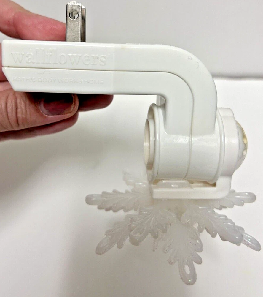 Bath and Body Works Wallflower Diffuser Plug in & Nightlight Snowflake Design Preowned in great condition. Some stains from the plug in oils. Does not affect use. Selling as is. Pet and smoke free.