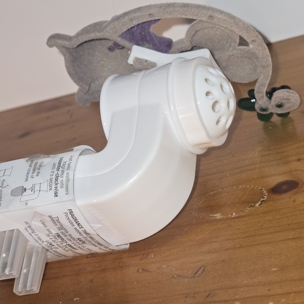 This Bath & Body Works fragrance holder is designed as a Mistletoe Mouse wearing a purple sweater. It is a wallflowers plug-in holder made of (faux) velvet and plastic materials in multicolor. The holder features a flocked texture and is powered by an outlet. It is ideal for use during the winter season and can be installed in any room. The theme of the holder is Mistletoe/Christmas/Mice.