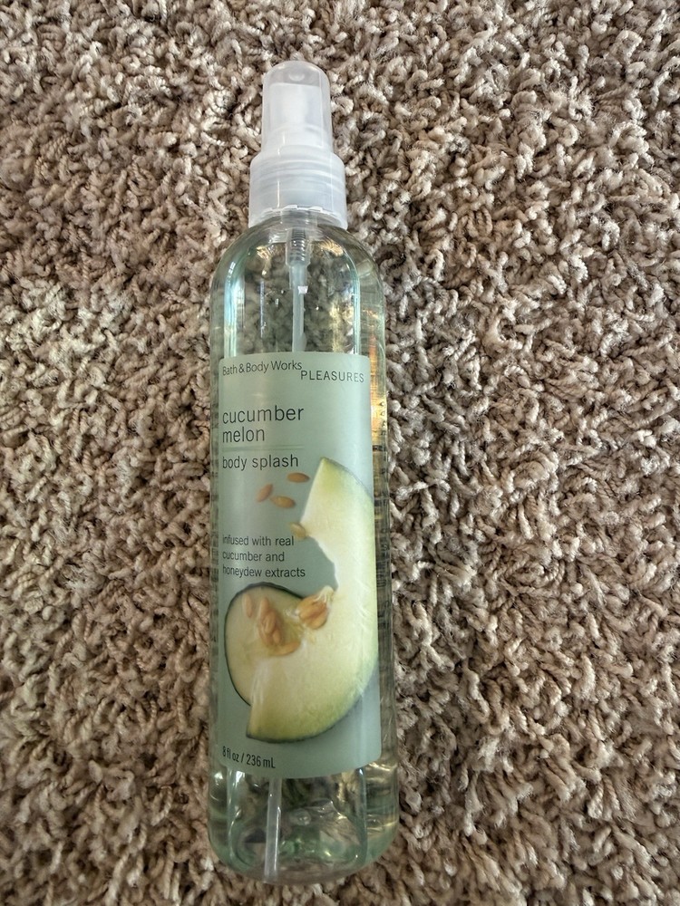 Brand: Bath & Body Works Volume: 8 fl oz Fragrance Name: Cucumber Melon MPN: retired popular scent Scent: Cucumber Department: Unisex Type: Body Splash Country of Origin: United States