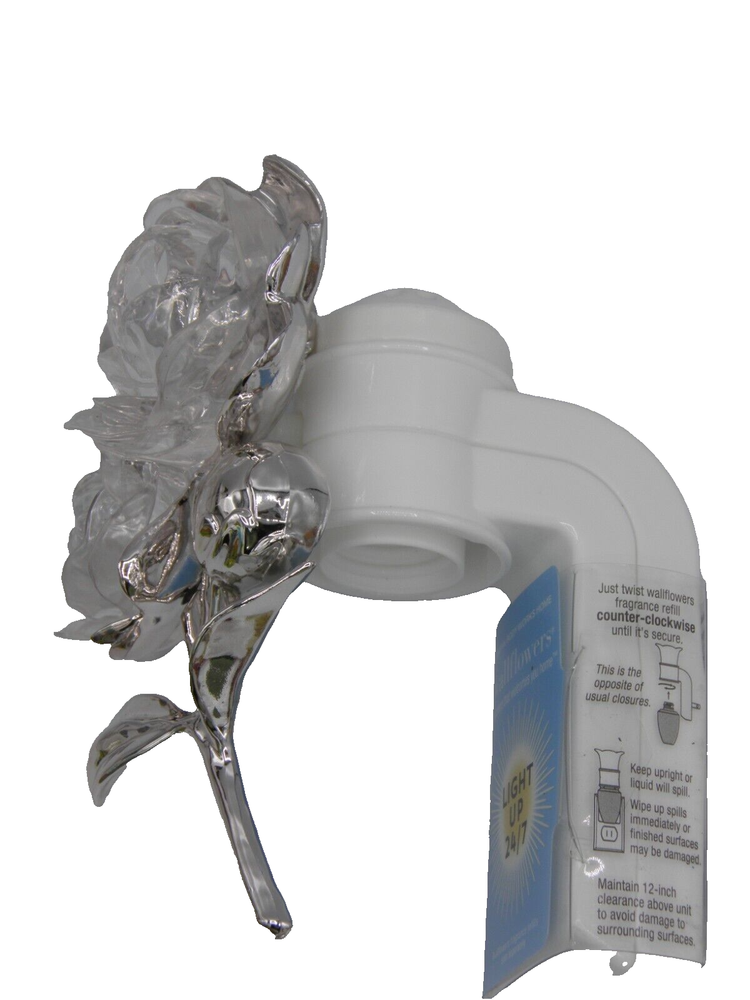 BATH & BODY WORKS SILVER CLEAR PEONY FLOWER WALLFLOWER PLUG To get started, twist right (clockwise) to uncap the refill and twist left (counter-clockwise) to attach it to the plug. Always keep your plug and fragrance refill upright. (Bonus: our rotating plug lets you use a vertical or horizontal outlet!) Because Wallflowers refills contain fragrance oils that may damage finished surfaces and some plastics, always keep a 12" clearance above your plug to prevent damage to surrounding surfaces. Mailing Address - We will ONLY ship to the address on file with eBay. Before making a purchase, please ensure that your address is correct. We may otherwise cancel the sale. Handling Time - Our handling time is set to THREE BUSINESS DAYS. We ship packages Monday - Friday, except on holidays. This listing is NOT sponsored by, affiliated with, or representative of the mentioned brand(s), trade name(s), or trademark(s) and does not claim any ownership of such. All trademarks or brands mentioned in this listing are registered trademarks of their original owners who reserve all their rights and ownership. The use or mention of any trade name, product name, or trademark is necessary for identification and is for reference purposes only.