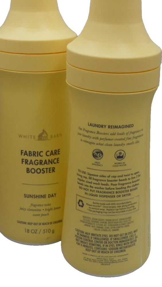 Bath & Body Works Sunshine Day Fabric Care Fragrance Booster (2 PACK) WHITE BARN Mailing Address - We will ONLY ship to the address on file with ebay. Before making a purchase, please ensure that your address is correct. We may otherwise cancel the sale. Handling Time - Our handling time is set to THREE BUSINESS DAYS. We ship packages Monday - Friday, with the exception of holidays. This listing is NOT sponsored by, affiliated with or representative of the mentioned brand(s), trade name(s), trademark(s) and does not claim any ownership of such. ALL PRODUCT LINE SPECIFICS AND INQUIRIES SHOULD BE DIRECTED TO BRAND NAME. Powder Puff Princess is not responsible for defective product/damages caused by product.All trademarks or brands mentioned in this listing are registered trademarks of their original owners who reserve all their rights and ownership. The use or mention of any trade-name, product name, or trademark is necessary and for identification and is for reference purposes only.