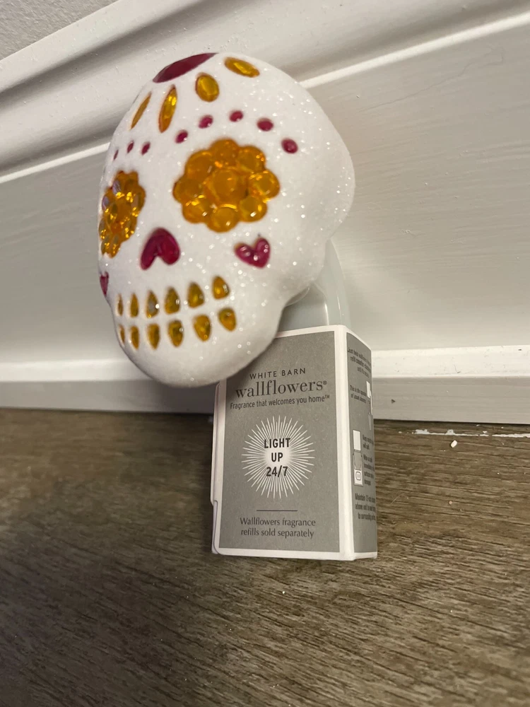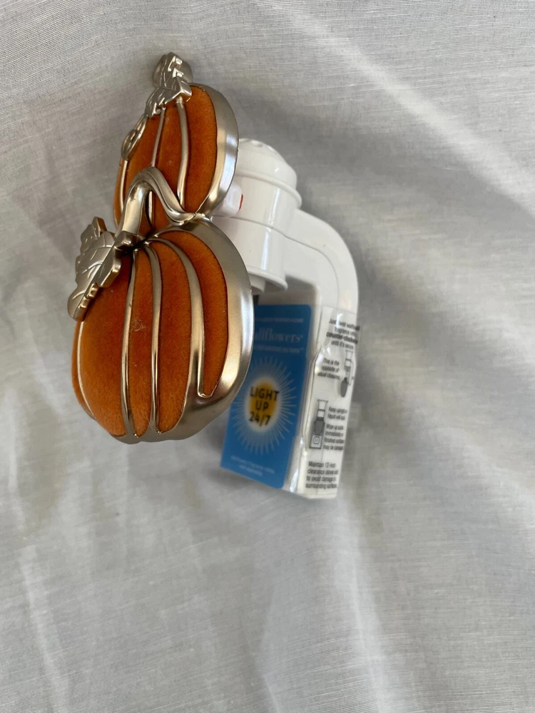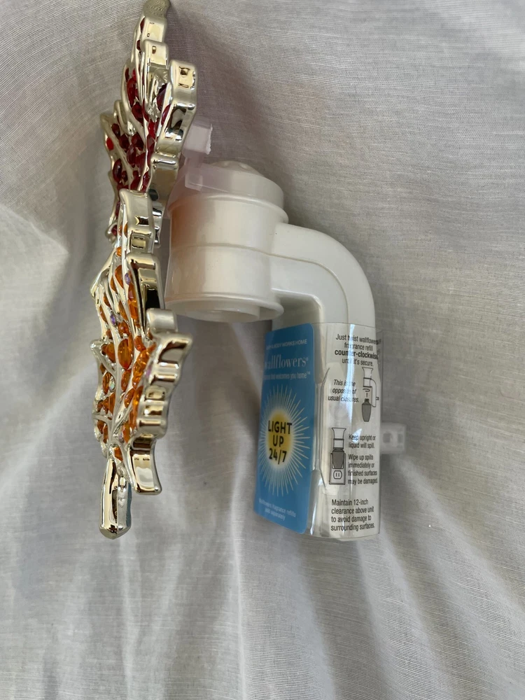 The Bath & Body Works Wallflower Plug In Diffuser from the Autumn Collection is a wall plug-in diffuser designed to add a pleasant and long-lasting scent to any room. Made of bronze, plastic, and metal, this diffuser features a variety of assorted/mixed scents to choose from. It functions as a deodorizer and odor eliminator, providing a continuous fragrance experience. Perfect for anyone looking to add a cozy touch to their home during the autumn season.