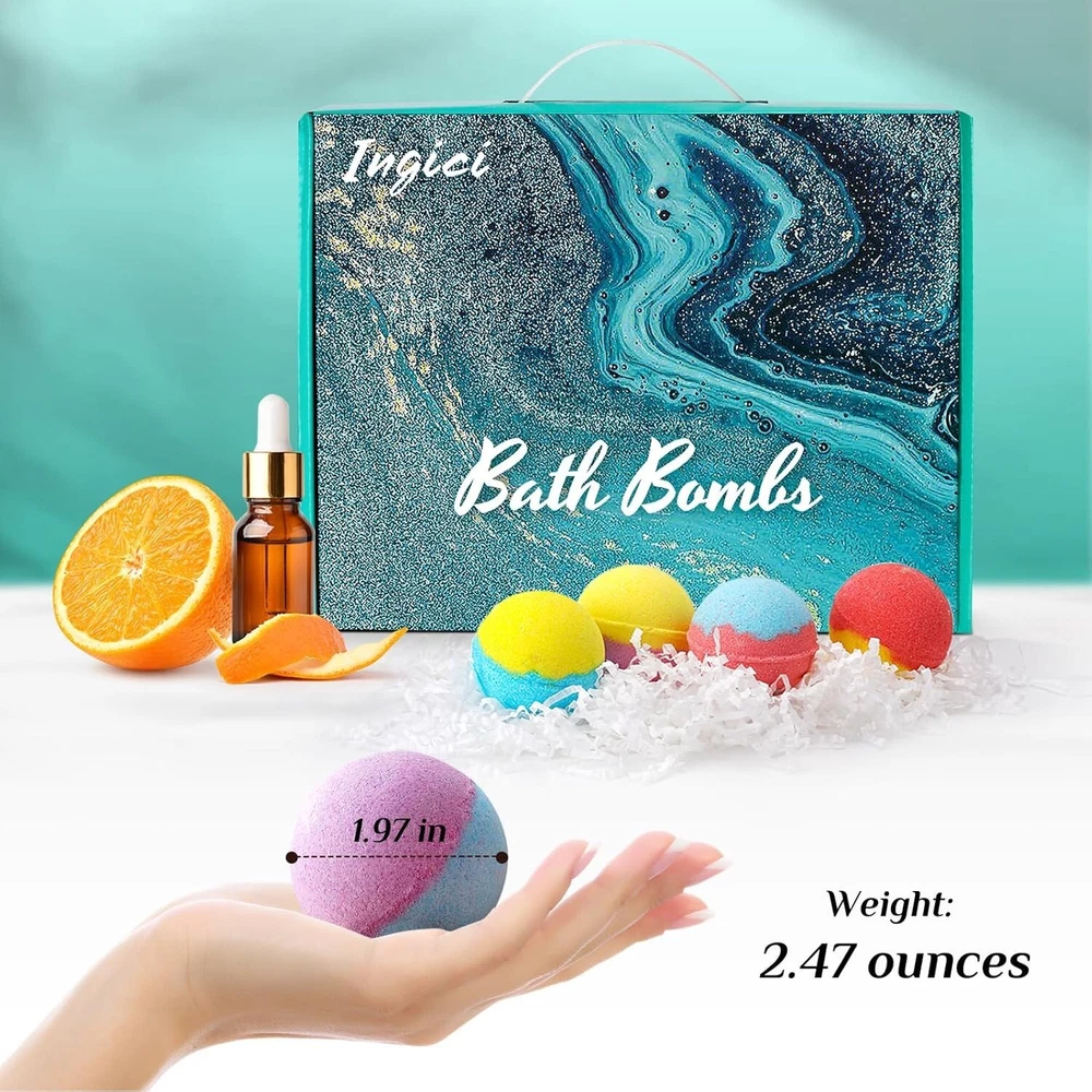 BRAND NEW Perfect Bath Bombs Gift Choose - Each box contains 20 bath bombs and 10 different scents, more choices to accompany you to enjoy your luxurious bathing experience. Exquisite packaging, high quality bath bombs, it is best Self Care Gifts for Women. Best Gifts for Women - Exquisite gift box design, each bath bombs is individually packaged, convenient for home and travel use. And very suitable as birthday gifts for women, gifts for mom, gifts for her, best friend gifts for women, teacher appreciation gifts, bridesmaid gifts. Natural Organic Bath Bombs - Ingici bath bombs extract pure natural essential oils from plants, Optimize production process and Upgrade recipe, The bath ball can not only clean the skin but also moisturize and smooth your skin. Fragrant Bubble Bath - When you throw the bath bombs into the water, it will start to rise and dissolve. Releases a large number of colorful bubbles on the water surface, accompanied by a sizzling sound, the soothing fragrance begins to spread. Birthday Gifts for Women - Ingici bath bombs are composed of natural plant essential oils, shea butter, sea salt and more safe organic ingredients, so you do not have to worry about staining your bathtub. Great gifts for mom, women, her, best friend, teen girl, grandma, sister, teacher and wife. THANK YOU