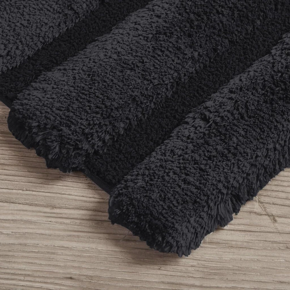 Transform your bathroom into a simple and stylish haven with our Tufted Pearl Channel Rug. This solid tufted bath rug features a high-low stripe design with a light sheen and luster that adds rich dimension and texture for the perfect shabby chic touch your bathroom decor. Constructed from 100% macro-spun polyester fibers, each tufted bath rug is also durable for long-lasting, incredibly soft. Machine washable for easy care and available in a soft palette of fade and stain resistant colors, this tufted bath rug is the perfect addition to complete any bathroom decor! MATERIAL - The 1500GSM tufted bath rug, made from macro-spun durable polyester fibers, is extremely soft, breathable, and cozy. It absorbs water efficiently and the thick plush quality giving you a luxurious spa-like feel with every step DESIGN - Luxurious channel tufted bath rug featuring a combination of high- & low stripe design to create a chic textural contrast. Ultra-soft and plush bath matt is highly absorbent comes with rubber back non-slip design to keep it in place OEKO-TEX Certified - It is Oeko-Tex certified for for superior COMFORT and WELLNESS, as they are free from any substances or chemicals that may compromise quality SIZE: 1 Bathroom Rug: 17"W x 24"L with pile height ranging from 0.25" Medium and 1" Plush EASY CARE - Machine wash cold seperately, on gentle/delicate cycle. Use mild detergent. Do not bleach. Tumble dry low, remove promptly. Some linting may occur due to nature of fabric. Do not iron. Do not dry clean