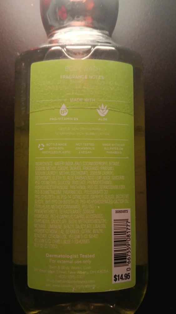 Aloe Vera, Green Tea, Shea Butter, Vitamin E, Water, White Tea