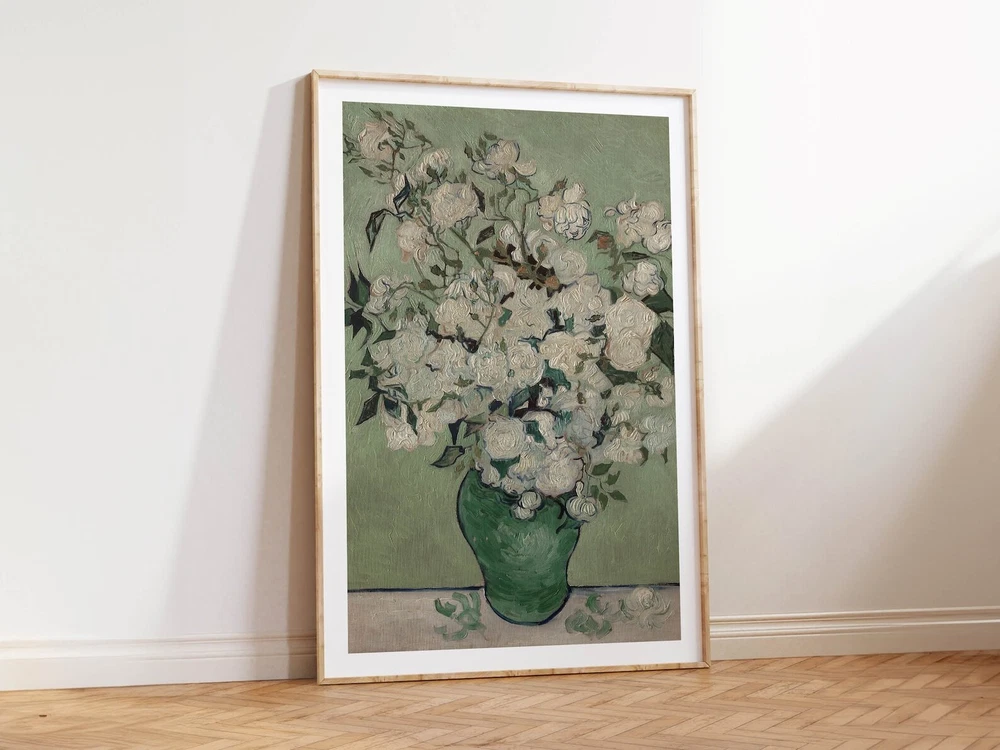 Bathroom Art Roses Petals Painting Poster Print Vintage Still Life Flower Bouquet Midcentury Style Womans Room Wall Decor Green Gift Material: Premium luster photo paper Print type: Inkjet printing One side printed + The finish provides the highest possible resolution and color saturation + Lasts up to 200 years in color and 400 years in black-and-white + Printed on high-quality resin-coated photo base paper medium + Posters can be hung with double-sided tape, tacks, or framed + Hand washing with a gentle cry cloth is recommended for extended durability I will hand select the best choice of paper for your chosen design to ensure top quality results for a beautiful, bright and luxurious print. All prints are sealed in cellophane slips for protection during transportation, and are shipped in a protective cardboard envelope.