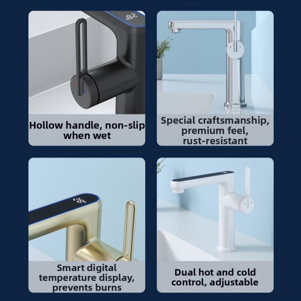 Beschreibung Features: *LED Temperature Indicator: This basin faucet features a built-in LED light that changes color based on water temperature, providing a visual cue for safe usage while adding a modern touch to your bathroom decor. *Good Construction: Made from robust brass, the faucet body is designed for longevity, insure that the faucet withstands daily use without compromising performance. *Good Valve Technology: The faucet is equipped with a valve that enhances durability and provides a smooth operation, allowing for precise control over water flow and temperature. *Dual Water Supply: Comes with two 60CM pipes for easy connection to both hot and cold water supplies, facilitating quick installation and convenient access to temperature-controlled water. *Versatile Design: The single hole design makes it compatible with various sink styles, making it an good choice for modern bathroom setups. Specifications: *Product Name: Basin faucet *Material:Brass *Size:As shown *Color:Chrome,Black,Gray,White * Mounting hole diameter: 32-38mm * Inlet pipe dimensions:60cm(G1/2") Package Content: 1 x Basin faucet 2 x Inlet pipe Note: 1. The real color of the item may be slightly different from the pictures shown on website caused by many factors such as brightness of your monitor and light brightness. 2. Please allow slight manual measurement deviation for the data. POLICES Shipping Payment WARRANTY We only ship to confirmed ebay Order addresses. Please comfirm that your Order address is in line with your shipping address. Please kindly note that the c ombined shipping is not provided because the shipping fee is calculated by weight. Also, the each additional item means exactly the the same color and size. It takes about 7 -15 working days to US; about 10-30 working days to other countries. Transit time may be a little delayed because of the bad weather and customs inspection . If you do not receive your item within 30 working days since payment finished, please contact us immediately for further assistance. Payment must be completed within 5 days. If you have any problems about payment, please contact us via ebay message. We strive for 100% customer satisfaction! Positive Feedback is very important to us. If you have any questions, p lease feel free to contact us via "Ask seller a question" . We will reply your email within 24 working hours.