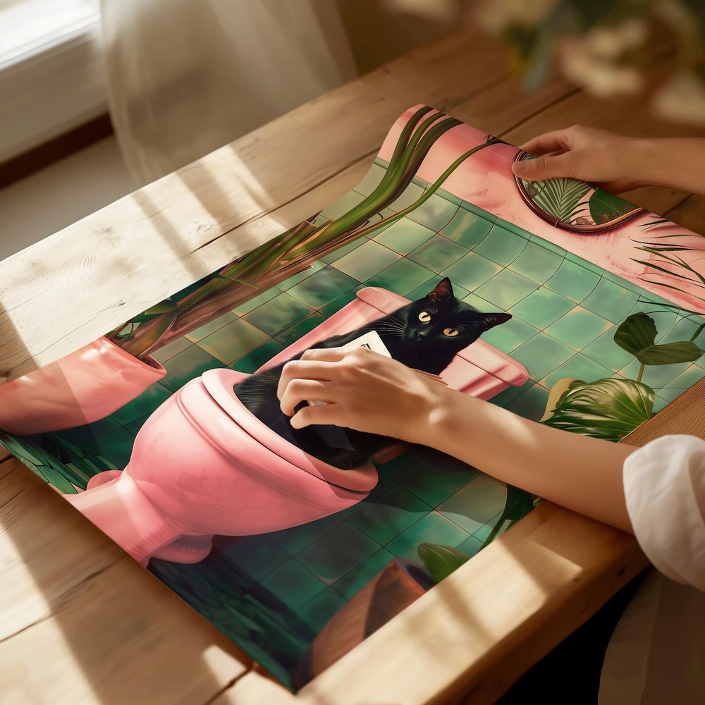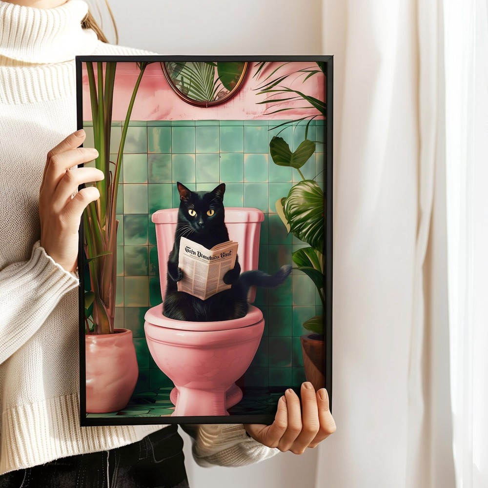 Bathroom Cat Print Reading On Toilet Bathroom Wall Art Funny Bathroom Decor Toilet Wall Art Funny Cat Poster Bathroom Prints Toilet Poster Material: Premium luster photo paper Print type: Inkjet printing One side printed + The finish provides the highest possible resolution and color saturation + Lasts up to 200 years in color and 400 years in black-and-white + Printed on high-quality resin-coated photo base paper medium + Posters can be hung with double-sided tape, tacks, or framed + Hand washing with a gentle cry cloth is recommended for extended durability I will hand select the best choice of paper for your chosen design to ensure top quality results for a beautiful, bright and luxurious print. All prints are sealed in cellophane slips for protection during transportation, and are shipped in a protective cardboard envelope.