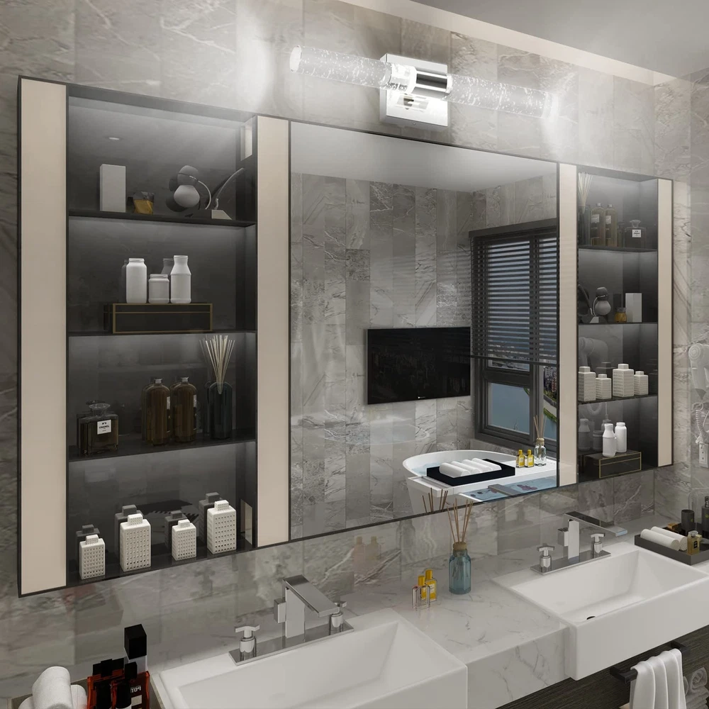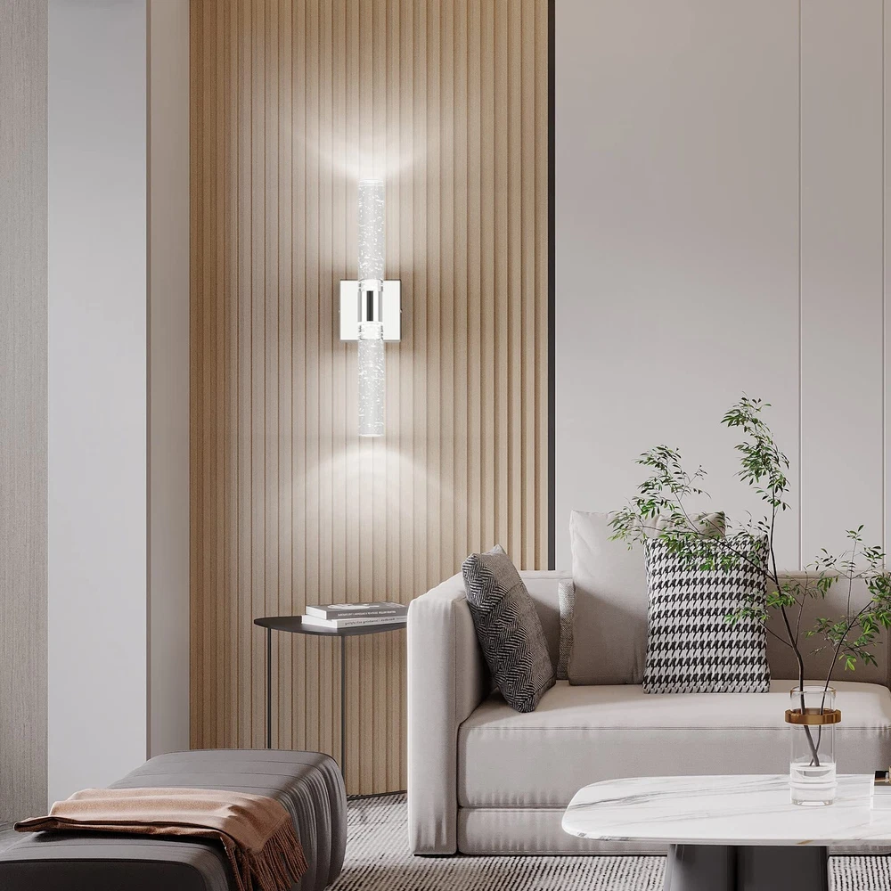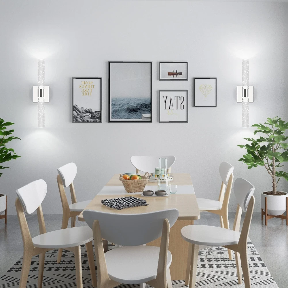 【Durable Quality】2-light bathroom wall sconces is made of sturdy metal in the Aluminum and full solid crystal lamp body design which creates a modern and minimalist look.The wall light will bring more exquisite and luxurious for your home lighting. 【Inspired Design】The body of this sconce wall lighting is all crystal design, waterproof, dustproof,easy to clean and has outstanding light transmission performance.When the light on,the bubbles in the crystal form a reflection of the starry sky,creating a romantic atmosphere. 【Easy Installation】The bathroom wall sconce lighting can be mounted in an horizontal or vertical direction.It depends on your preferences.No switch or cord on the light.JUST Connect to the reserved wire directly,Suitable US junction box standard. 【Energy Saving】This Vanity Light uses high quality LED lighting chip and 6000K white light creating stable and efficient light,and protecting your eyes.Compared to conventional light bulbs,this led vanity light saves up to 80% electricity and lifespan up to 50,000hours. 【Multi-Scene Application】The wall light can offer an amount of light style,blending perfectly with style from modern to farmhouse.It is an excellent choice for your bathroom mirror or bedroom,living room,dressing table,vanity table,mirror cabinets,doorway or entryway,corridor,foyer,bar coffee shop.