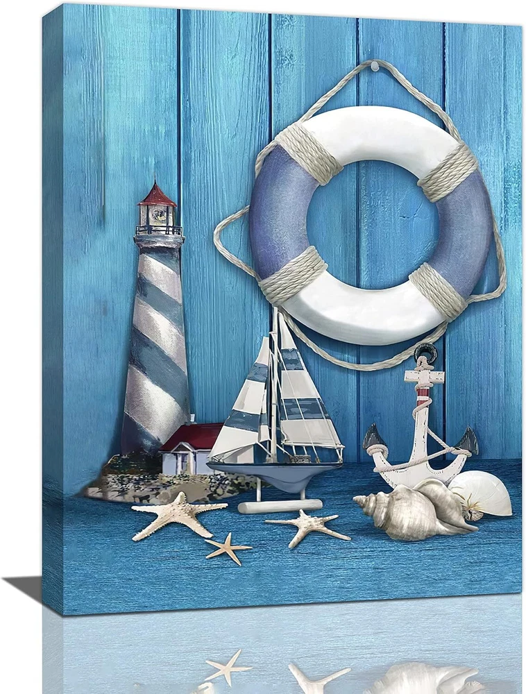 ��Design��Marine Element Theme Decorative frame painting.?The Light Blue Marine Decor Wall Art will definitely create the right home style you want, illuminate your space and impress your guests.Canvas Wall Art are the modern way to brighten the walls of your home, and relax you after work. A great christian gifts for women and children. ��Material��All Artwork is inkjet printed with a high-resolution using premium quality pigment-based Ink, making the images extra vibrant and sharp. High definition picture photo prints on canvas with vivid color.Durable & Waterproof canvas printed picture wall art.Solid wood frame inside package.We print with high-quality inks, never fade over time. ��Easy to hang��This high quality printed canvas is stapled and stretched with durable shrink-resistant frames,it comes already perfectly stretched on wooden frame with hooks mounted on each panel.It can be used almost everywhere.Just hang your new canvas art prints the day it arrives! Easy and convenient�� ��Utility��A perfect wall decorations paintings for living room, bedroom, kitchen, office, hotel, dining room.It is a great gift choice to your friends, families and relatives for Christmas, Birthdays, Father''s Day or Mother''s Day, Thanksgiving Day, Valentine''s Day etc.Due to different brands of monitors, actual wall art colors may be slightly different from the product image. ��High-quality service�� If you have any questions,please feel free to contact us! We will reply you within 24 hours.We put the utmost care into the construction of every order and hope,we are always here for you.