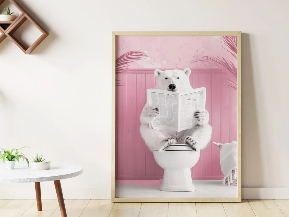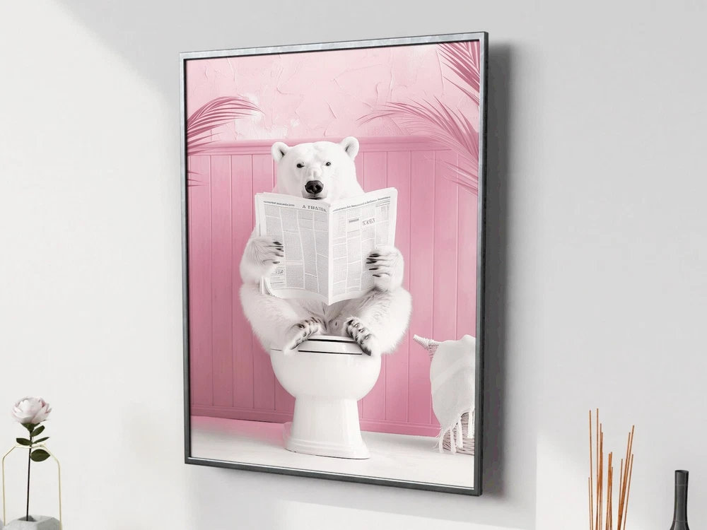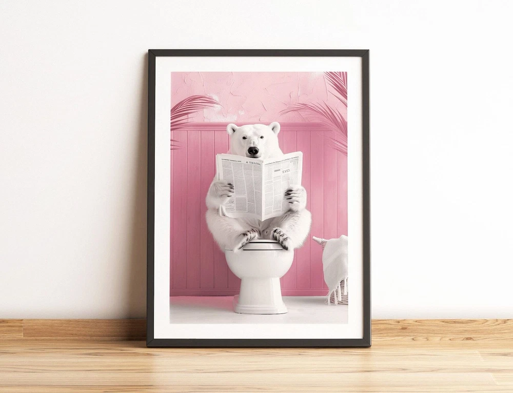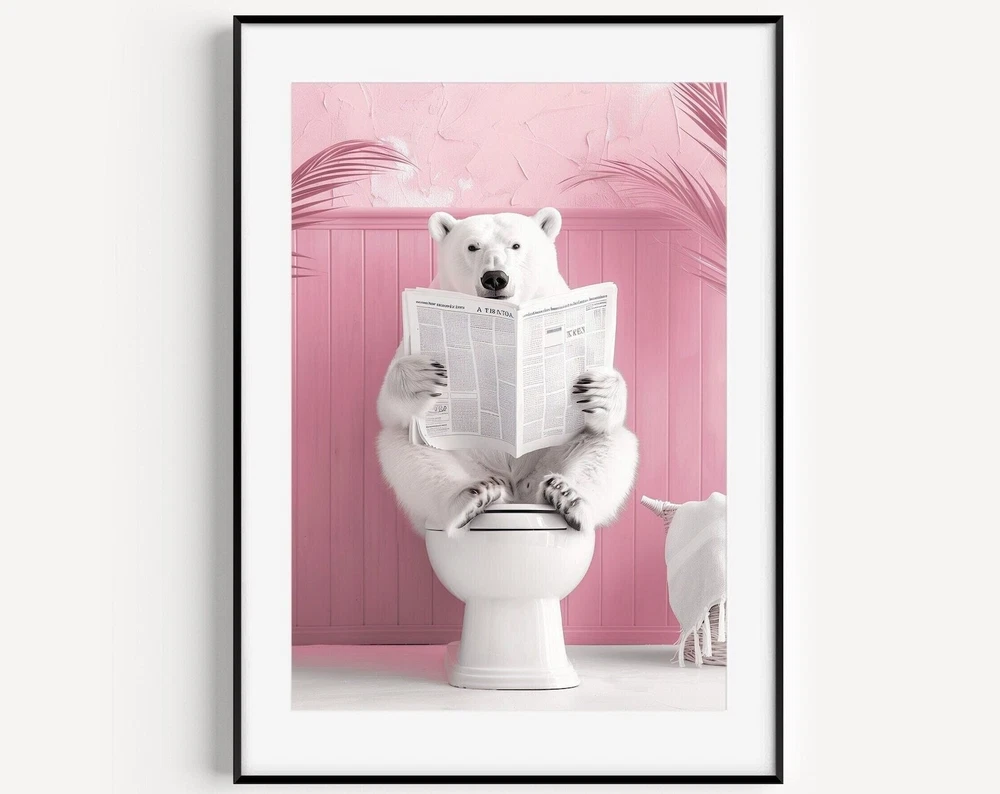 Bathroom Polar Bear Print Polar Bear On Toilet Funny Bathroom Wall Decor Toilet Poster Toilet Wall Art Funny Bear Poster Bathroom Wall Art Material: Premium luster photo paper Print type: Inkjet printing One side printed + The finish provides the highest possible resolution and color saturation + Lasts up to 200 years in color and 400 years in black-and-white + Printed on high-quality resin-coated photo base paper medium + Posters can be hung with double-sided tape, tacks, or framed + Hand washing with a gentle cry cloth is recommended for extended durability I will hand select the best choice of paper for your chosen design to ensure top quality results for a beautiful, bright and luxurious print. All prints are sealed in cellophane slips for protection during transportation, and are shipped in a protective cardboard envelope.