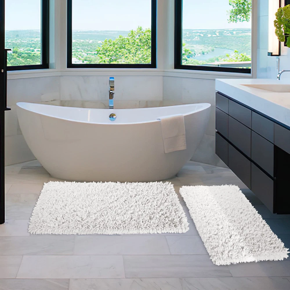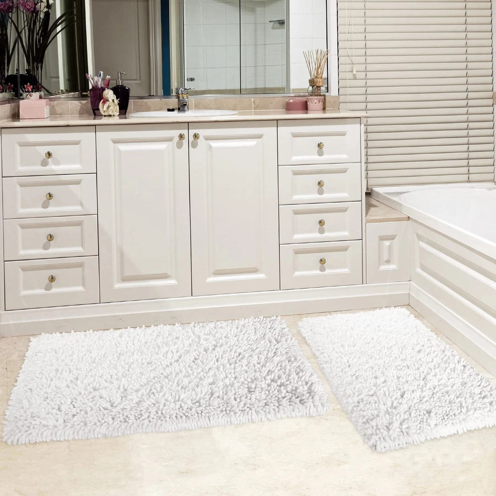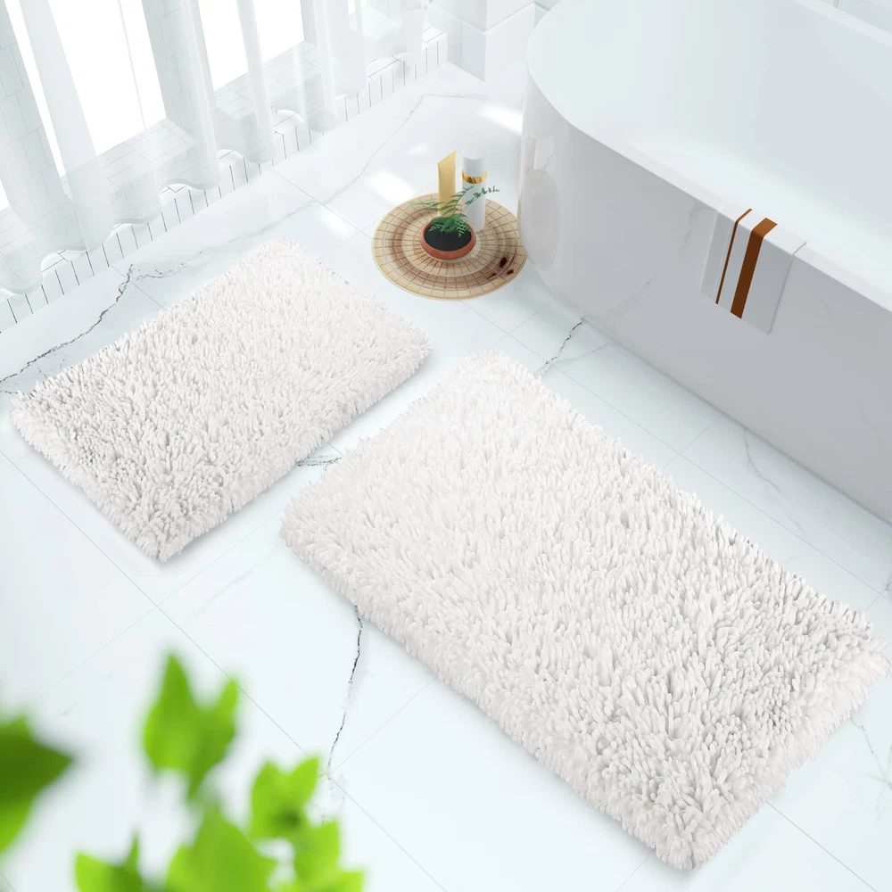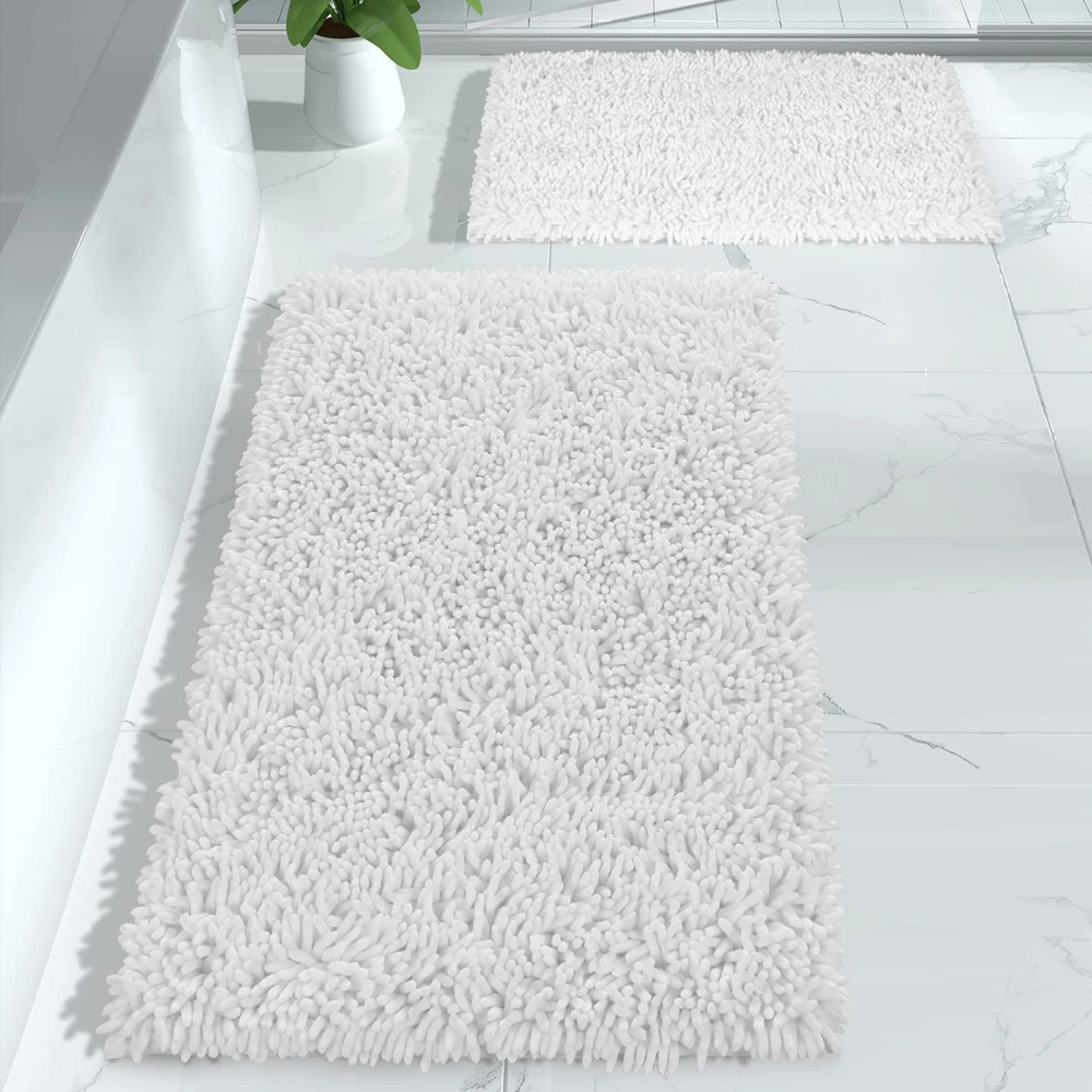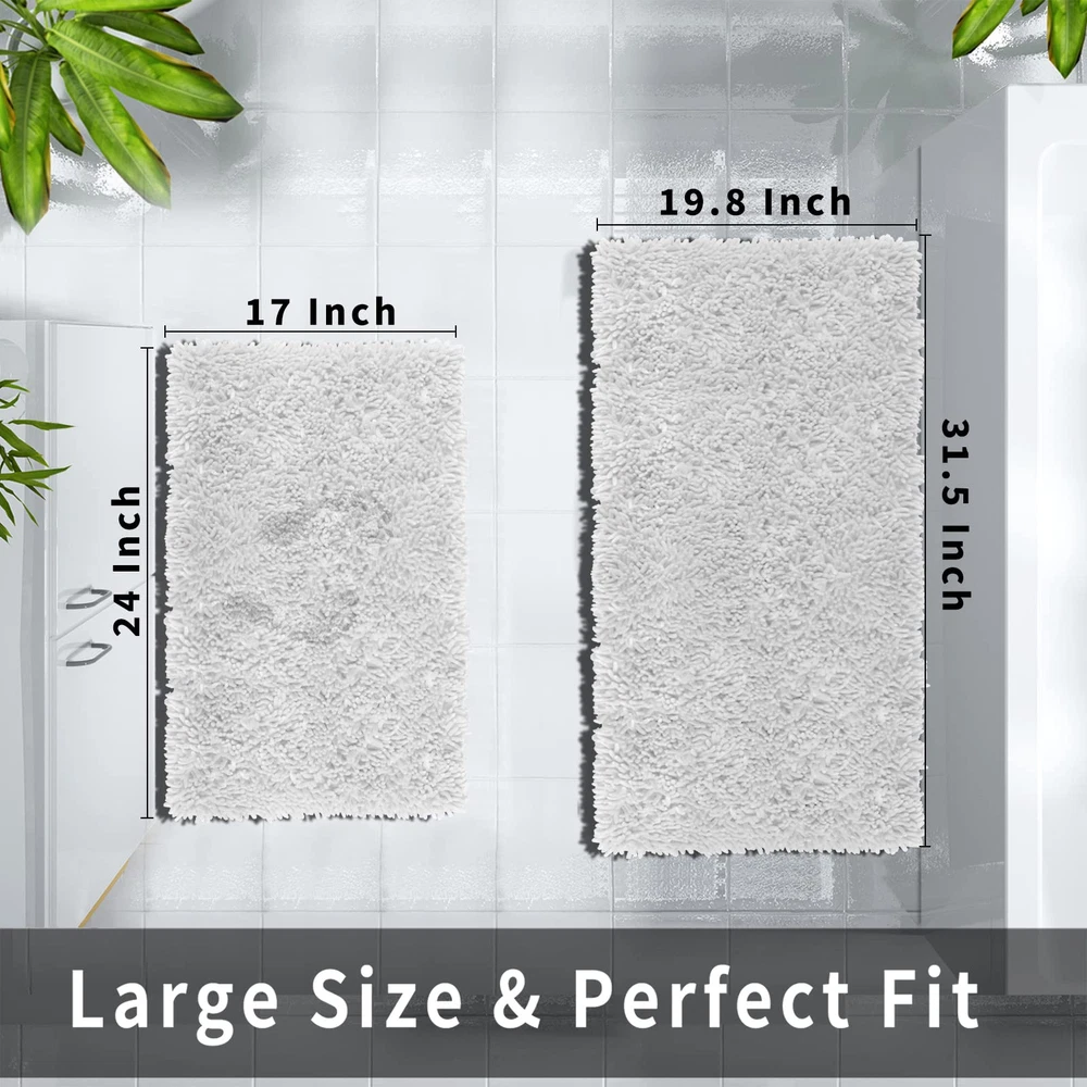 Super Soft Fluffy: chenille bathroom rug sets has a high and shiny pile that not only looks luxurious but feels like too. Fluffy heavy texture Bath rugs so cozy and snuggly, Please looking forward to the surprise, when you get out of the bath or shower! you feet will feel dry and cozy as soon as you stepping on the bath rugs Quick Water Absorption: Thick bathroom rugs and mats sets soak up the water while you're stepping out of the bath and keep your floor dry rely on built-in memory foam. Super absorbent rug is to dry quickly and keep floor cleanly Non Slip & Sturdy Backing: Non-slip bathroom rugs mats with extremely sturdy backing. Upgrade dense anti slip dots on the backing of the rug provide a strong grip, the non-slip mat on the back is as tightly as an eagle's paws are catching a chick Machine Washable: Simply throw the bath rug in your washing machine on cold with gentle detergent. hang to dry or air dry flat after washing, the machine washable rug will reborn as new, And the soft chenille bath mat shag will not be out of shape even after long use Versatile Use: Several color & size provided, Bath mat sets fits your bathroom perfectly. Suitable for sauna, shower, gym for bathroom, bedroom, dining room, living room, dressing table and so on. The luxurious appearance and unique luster brings high-level beauty to your room, and integrates the quality of life into the bits and pieces around you