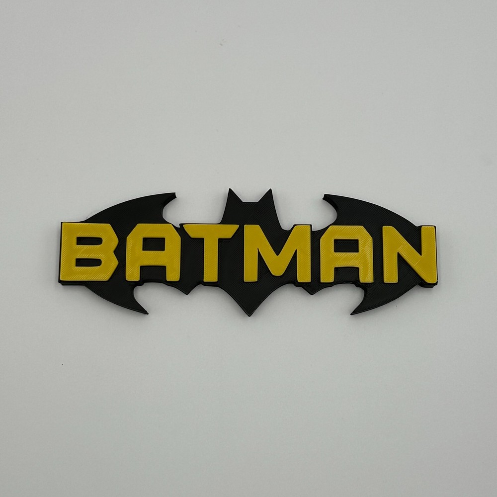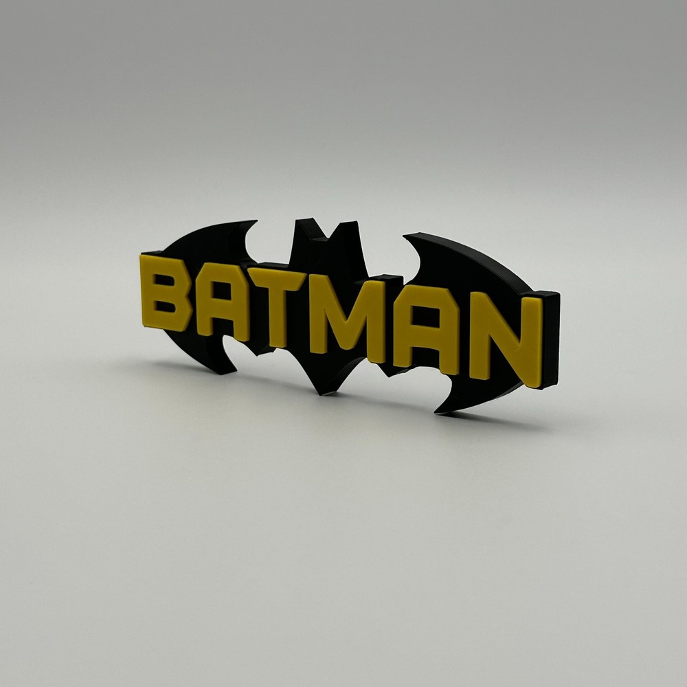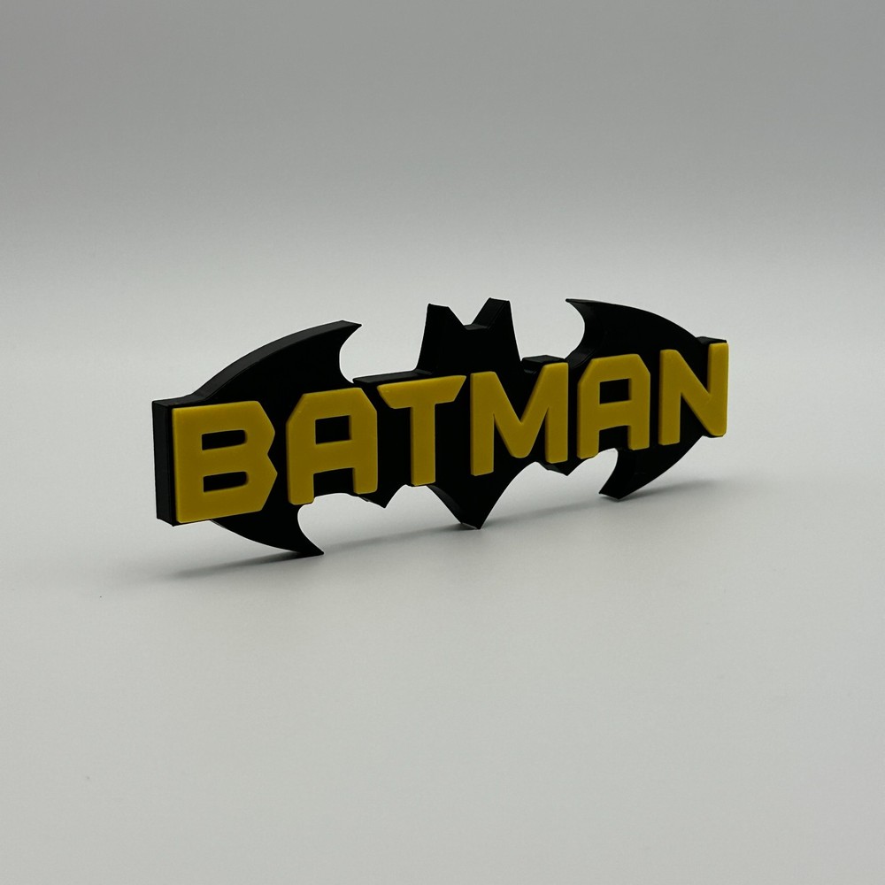 This Batman DC Comics logo desk decor is an ideal collectible for any superhero enthusiast, showcasing the iconic Bat-Signal design with the "BATMAN" name. Expertly 3D printed from durable plastic, this piece features a striking black and yellow color scheme, faithfully representing the Caped Crusader. In excellent condition, it makes a perfect addition to any desk, shelf, or display, offering a distinctive accent for your personal space.
