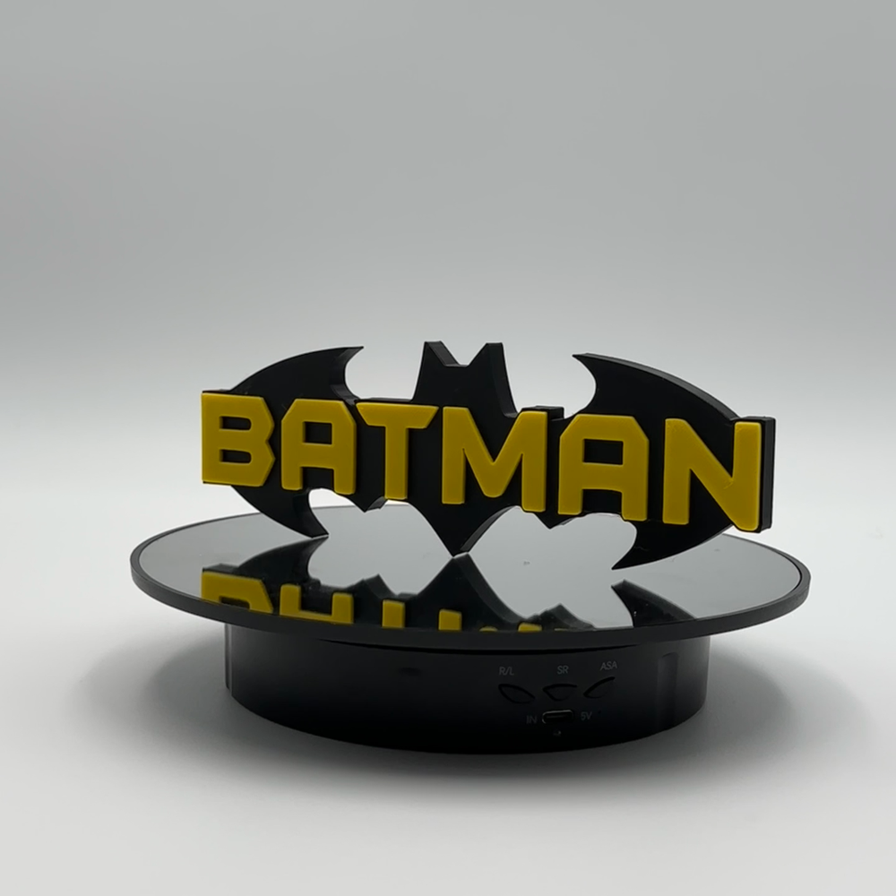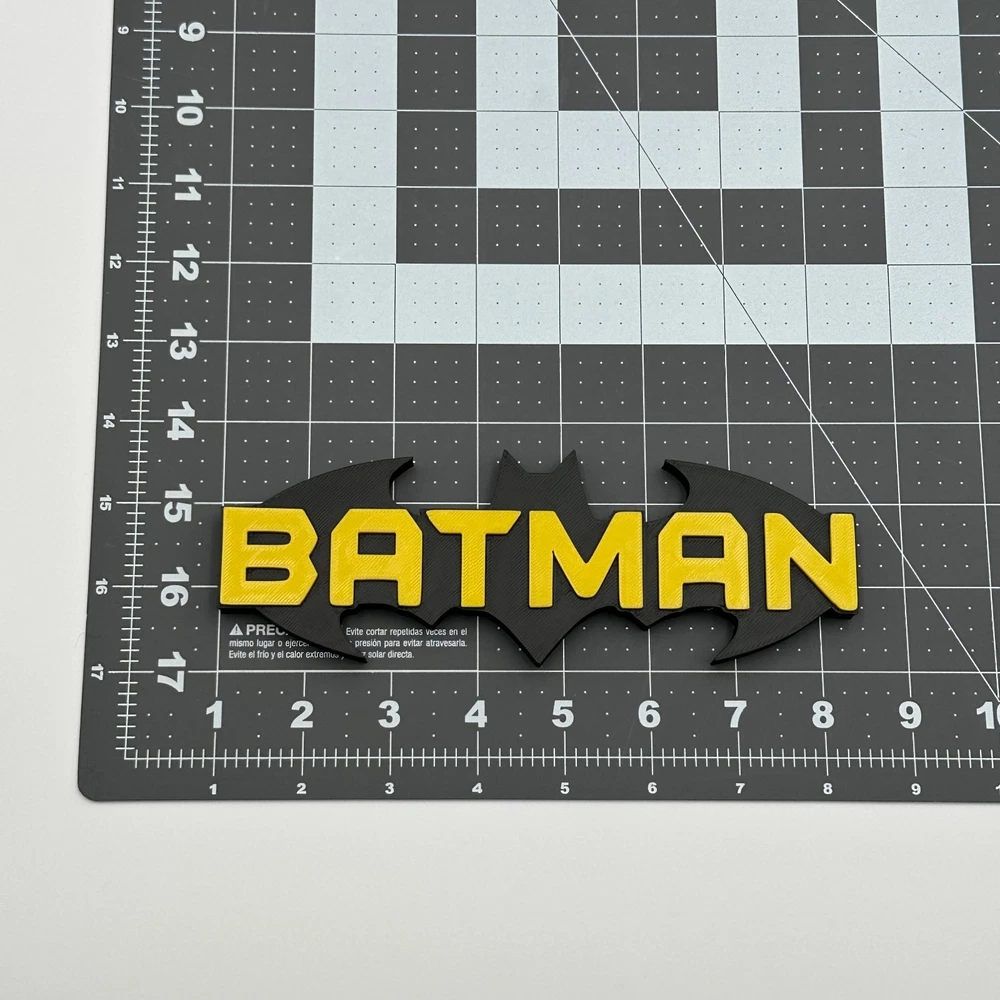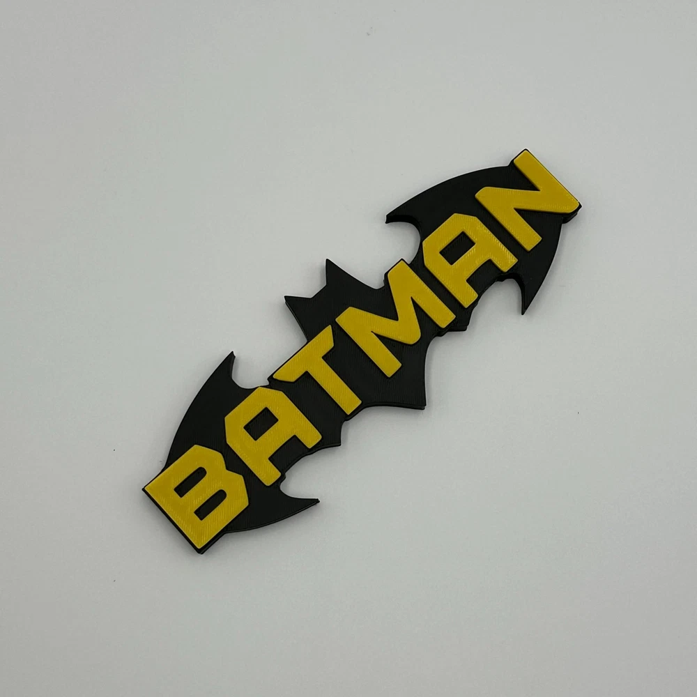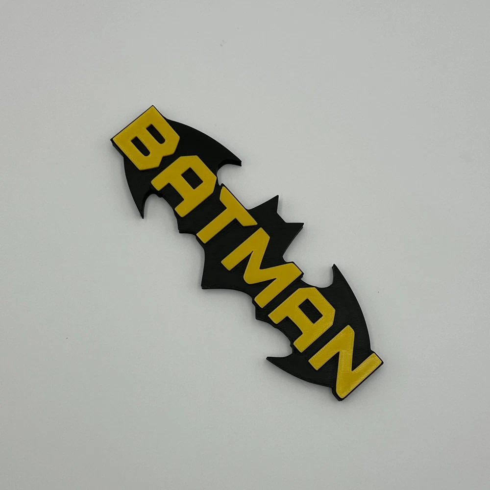 This Batman DC Comics logo desk decor is an ideal collectible for any superhero enthusiast, showcasing the iconic Bat-Signal design with the "BATMAN" name. Expertly 3D printed from durable plastic, this piece features a striking black and yellow color scheme, faithfully representing the Caped Crusader. In excellent condition, it makes a perfect addition to any desk, shelf, or display, offering a distinctive accent for your personal space.