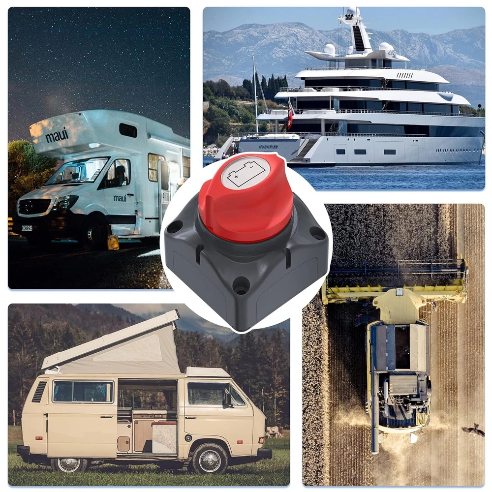About this item ON/OFF SWITCH: This Battery Disconnect Switch 12V features On/Off 2 Position; Rating: 275A DC Continuous (1hr), 455A DC Intermittent (5 min), 1250A DC Cranking (10 sec). Stud Size: 2x3/8" (10mm) SUPERIOR QUALITY: The battery switch is made of high quality ABS plastic, durable made for safety use, rear cover insulates terminals against any short of circuits. Compared with others, our battery disconnect switch is M10 tinned copper studs and nuts, which is safer and more reliable in electrical conductivity SAFETY PROTECTION: This Waterproof Battery Switch 12V can disconnects the battery safely, protect batteries from excessive drain when vehicle or boat is not in use WIDE APPLICATION: This battery shut off switch is suitable for DC 12 - 48V system to isolate and secure the electrical system, can stand alone or be locked together with other switches. It is widely used for Car, Marine, Boat, RV, Camper, Travel Trailer, Truck, ATV, UTV, Battery banks and other electrical equipment's switch PACKAGE INCLUDE: Package includes 1 x Battery Switch, 4 x stainless steel mounting screws and caps to help fix the switch tightly. For any problems, please do not hesitate to write to us Product Description Joinfworld Battery Disconnect Switch helps prevent electrical accidents and theft. They also provide a reliable way to turn off power during maintenance, and protect against excessive battery consumption and disconnect the battery safely. Features: The ON/OFF battery disconnect switch is designed for use on a single 12-48 volt battery. It can prevent unknown devices from draining the battery and save you from having to recharge it on a regular basis. The patented Contour Locking System, allowing it to be a stand-alone unit, or locked together with other switches. This battery cut off switch has four removable side plates provide access of up to 1/0 cables. The rear cover insulating the rear terminals against any short circuits, ensuring that the switch meets ABYC requirements. Tin-plated copper studs and nuts, ignition-protected. This contour battery master switch is widely used for Car, Marine, Boat, RV, Camper, Travel Trailer, Truck, ATV, UTV, Battery banks and other 0-48V Devices. Ergonomic design helps to provide control and accessibility in tight corners and spaces. Specifications: Working Voltage: 12-48V Overload Current: 300A Main Use: Power Off switch Rotation Angle: 90 degrees Material: ABS+Copper Size: 69 (L)x69 (W)x75(H)mm/2.75x2.75x3 inch Color: Red&Black Product Details Display ON-OFF Battery Switch This battery disconnect switch features on/off switch knob; Switch on = Power; Switch off = No power. Simple design to facilitate your operation. Waterproof Power Cut-OFF Switch This car battery disconnect switch is made of ABS plastic housing, waterproof and dust proof, more durable. M10 Tinned Copper Studs&Nuts Different from others, our battery disconnect switch is M10 copper screw, which is safer and more reliable in electrical conductivity. Package Include Package includes 1* Battery Switch, 4 stainless steel mounting screws and caps to help fix the switch tightly. Warm Prompt: The rated current of the switch is 275A, please do not exceed this value for a long time! Otherwise the switch will burn out. Please use the switch strictly according to the wiring diagram! Incorrect wiring will not have the effect of disconnecting the power supply. Shipping: We will ship withing 1 business day after clearly payment Please check your shipping address registered on eBay Payment: We accept PayPal payment only Customer Service: Please feel free to contact us anytime via eBay message only Our goal is to make sure you are a happy buyer and pleasant shopping with us. Please message us before leaving any 1 or 2 ratings, negative feedback or open case or PayPal dispute. Please contact us with any question / comments / complaints. We will reply you within 24~36 Hours. We will make sure you are satisfied with your transaction. Please give us a chance to resolve any issues before posting a feedback.