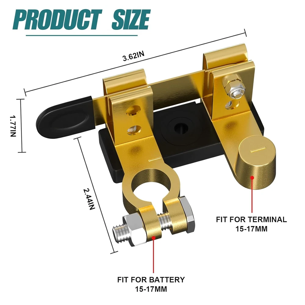 Store New Arrivals Add to Favorite View Feedback Contact Battery Disconnect Switch, Top Post Battery Disconnect Switch 12V 24V, Battery Cut off Shut off Switch for Car Marine Boat RV ATV (Negative, Vertical) Battery Disconnect Switch, Top Post Battery Disconnect Switch 12V 24V, Battery Cut off Shut off Switch for Car Marine Boat RV ATV (Negative, Vertical) Operation: Install the battery cut off switch 12v on the negative cable, toggle the lever up or down to turn the power off or on, make sure the connection is good, on/off 2 positions. Compatible: 12V 24V Vertical battery cut off switch Continuous 250A and Momentary 750A is easy to install, compact, flexible and convenient to use. Widely used in Car, Boat, RV and ATV. Material: Battery shut off switch 12v made of good brass, great conductivity, rust and corrosion resistant. Functionality: Not commonly used cars parked for a long time will consume battery power, battery disconnect for battery isolation and protection of the electrical system, prevent the battery from running out of power, prolonging the service life of the battery. Good Choice: The top post battery disconnect switch is smooth and shiny, not easy to hurt your hand, protect the battery, it is a must-have good thing for family. We always take your satisfaction as the ultimate goal. Product Specification: 1.Fits standard battery terminals 15-17MM, 2 positions on/off. 2. Voltage: 12V-24V, Continuous 250A, Instantaneous 750A 3. Knife-edge, Switches that turn the power off and on upward and downward. 4. Safe disconnection of the battery, to prevent the battery from running out of power. 5. Widely used in Car, Ship, RV and ATV. 6. Individually packaged, package size:2.83*2.8*4.25in Our Top Post Battery Disconnect Switch: Good conductivity High oxidation resistance Corrosion resistance Stable chemical performance Why do you need a battery switch? Battery Disconnect Switch can help you solve the problems of dead batteries, battery leakage, short battery life, etc. It prevents the batteries from running out of power and prolongs the life of the batteries. Product Dimensions: 1.77 inches x 2.44 inches x 3.62 inches. Weight: 5.61 oz About Us Our vision is to be eBay’s most customer-centric store, where customers can find and discover anything they might want to buy online, and endeavors to offer its customers the lowest possible prices." "Our mission is to serve consumers online and focus on selection, price, and convenience." #Find it, Love it, Buy it Payment policy We currently accept payment via eBay managed payment only. Once payment is cleared, We will dispatch your shipment with 1-3 business days. Please refer to the "Shipping" tab for more information regarding shipping speed to your destination. Shipping policy 1. We offer FREE shipping on all orders! 2. We ship within three business days of payment, usually sooner. 3. We use a selection of shipping services such as UPS, FedEx, USPS etc. 4. We only ship to the lower 48 states, no APO/FPO addresses or PO Boxes allowed. 5. Local pickups and combined shipping options are not provided at this time. Returns We are committed to your happiness. That’s why we offer a 30-Day Return Policy on items that you are not completely satisfied with. You have the option for a refund or an exchange of the item.