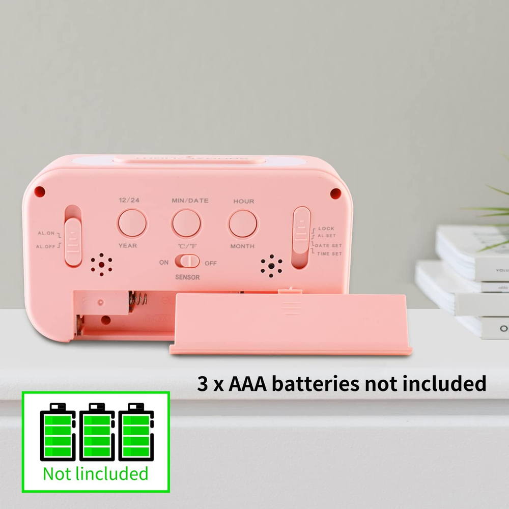 Store New Arrivals Add to Favorite View Feedback Contact Fast deliveries to the customer's home Quality customer service John Make the customers happy! Digital Alarm Clock with Indoor Temperature, Battery Operated,Snooze Model,12/24H Display for Bedrooms Heavy Sleepers Kids Travel Bathroom Desk Smart Clock, Pink Description 【HD LCD screen& Battery Operated 】The small clock face is utilized HD LCD screen, can be read easily.This alarm clock is powered by 3 x AAA batteries only (not included). The small and modern alarm clock design also a good room decoration 【Multi function display 】Our alarm clock display hour、minutes and 12/24 hour format selectable.Display "month", "day" and "year"(default date January 1, 2012).Set up daily alarm with snoozing.Temperature range from -9℃~ 50℃(16˚F~122˚F),intelligent sensing environment temperature, temperature can be real-time view 【Snooze Supported】You just need to press the "Snooze" button at the top of the clock, the alarm bell will temporarily stop, and the alarm will ring again in five minutes without a limit of times. One minute without operation or press any key on the back to close the alarm 【Night light function】 When you wake up at night need to check time,press the LIGHT button at the top of the alarm clock to light up the screen for five seconds and turn off 【Wide range of uses】This digital alarm clock suitable for bedrooms, bedsides,bathroom,offices, desk ,kitchens and everything else you need a reminder of. The small and light design is perfect as a travel alarm clock.The loud alarm clock also suitble for heavy sleepers adults Product Description Our alarm clock for kids is stylish and compact design enough to fit your house and furniture. It's not only an alarm clock, but a nice extra decoration for your kids bedside.The alarm clock goes from slow to fast so that the child does not wake up. The buttons on the rear are very self explanatory, so it is very easy to set up! Suitable for any occation where you need a reminder of The stylish and compact design look is perfect as a gift for the elderly, kids and friends. Item model number YUAN-AL01 Style Modern Number of Items 1 Power Source Battery Powered Dial Color Pink Country of Origin China Operation Mode Digital Theme Modern Are Batteries Included No Room Type Kitchen, Bathroom Product Dimensions 5.9"W x 3.14"H Material Plastic Watch Movement Automatic Frame Material Acrylonitrile Butadiene Styrene Age Range (Description) Kid,Adults Alarm Clock Yes Number of Batteries 3 AAA batteries required. Indoor/Outdoor Usage Indoor Item Weight 5.9 ounces Special Feature Snooze, Alarm Display Type Digital Mounting Type Tabletop Clock Form Travel Color Pink Shape Rectangular Batteries 3 AAA batteries required. ABOUT US We offer the best prices around on high quality products. Our E-store includes media such as books, movies, music and games while offering electronics, toys, sporting apparel, clothing, tools, general home, garden items and more. SHIPPING We are always working hard to ensure your package arrives as soon as possible. Please understand that some factors like weather, high postal traffic, and the performance of shipping companies are outside of our control. We offer free shipping to the lower 48 states and ship within 2 business days of payment, usually sooner. We do not accept P.O. Boxes. Please provide a physical address. For shipping outside of the continental USA, we only use eBay's Global Shipping Program. The item is shipped to KY and then sent to the rest of the world. International customers are responsible for all duties and taxes. Continue to 'check out' to calculate costs for shipping the item to your country. Messages regarding eBay's Global Shipping Program MUST be directed at eBay EXCLUSIVELY. RETURNS We offer a 30-Day Return Policy on items in which you are not completely satisfied with. You have the option of a full-refund or an exchange of the item. No returns are available on items shipped outside of the USA PAYMENT We accept PayPal. CONTACT US This page content is yet to come Please ad us to your favorite seller and visit again later Thank You CUSTOMER SATISFACTION We try our very best to make sure every customer is completely satisfied. If there's a problem, message us! We're happy to help. WE ACCEPT