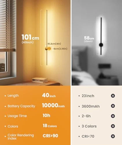 Return Policy Fast Delivery Trusted seller Battery Operated Wall Sconce Set of 2, 10000mAh Rechargeable Dimmable LED Wall Lamps with Remote, Modern Wireless Wall Lights for Bedroom, Living Room, Hallway, Indoor Decor, 40 Inch, Golden Product Description 【High-capacity Battery】This battery operated wall sconce features a powerful 10,000mAh battery that charges in just 5 hours and offers an impressive usage time of 10 hours, making it perfect for many different scenes. 【Wireless & Easy to Install】Our rechargeable wall sconces redefine convenience with their hassle-free installation— no wiring or electrician needed, include all mounting hardware for quick and easy installation. The sleek, modern design effortlessly complements any indoor space, providing both practical lighting and stylish appeal. 【Dimmable & Remote Control】Customize your lighting experience with 3 adjustable color temperatures from 3000K to 6000K and five brightness levels (10%-100%), plus 15 RGB colors—all easily controlled via remote. Free your hands.(Note: Batteries are not included in the remote control.) 【Timer & Memory Function】This wireless wall sconces set of two include a 10-minute and 30-minute timer to help you save battery and reduce power use. It also has a memory function that retains your last color and brightness settings, so you don’t need to reset them after powering on again. 【Distinctive Design & Versatile Use】This wall sconce features a unique design and versatile functionality, with a streamlined aluminum body and an elegant matte black finish. Its minimalist yet sophisticated appearance seamlessly integrates with various interior styles. Ideal for enhancing the ambiance of living rooms, bedrooms, stairs, hallway and more. It combines modern aesthetics with practical lighting, making it a stylish and functional choice for any space. 【Service Starts Here】We stand behind our wall sconces with a full 12-month replacement service. If you encounter any issues or defects within this period, we offer a hassle-free replacement. Our dedicated after-sales service ensures that any questions or problems will be addressed within 12 hours. We are committed to providing top-notch support for your purchase. Shipping Returns Payment Shipping Shipping is FREE to all addresses other than APO/PO boxes in the lower 48 states. All our stock ships from US-based warehouses. Shipped via USPS or UPS (depending on location and package weight) Unless stated otherwise, all orders will ship within 24-72 hours of your payment being processed. Check our feedback to see the great reviews of FAST shipping we offer. Returns Seller does not accept returns Payment We currently accept payment via eBay managed payments only. Once payment is cleared, we will dispatch your shipment within 1-3 business days. Please refer to the "Shipping" tab for more information regarding shipping speed to your destination.