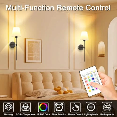 Return Policy Fast Delivery Trusted seller Battery Operated Wall Sconce Set of 2 - Rechargeable Wireless Wall Lights with Remote, 6000mAh Dimmable Bulbs with 15 Colors, Wall Decor for Living Room, Bedroom, and Hallway (Black) Product Description ?Efficient & Durable Battery Wall Sconce This battery operated wall sconce is powered by a 6000mAh rechargeable battery and comes with two E26 bulbs, each providing 300 lumens of brightness. With a remarkable 40,000-hour lifespan, it offers 25 hours of continuous lighting at maximum brightness and up to 72 hours at the lowest setting, making it a reliable and energy-efficient choice for your home lighting needs. ?Adjustable 15 Color Modes& Brightness With 3 adjustable color temperatures and 12 RGB effects (gradient and jump modes), this wall sconce sets the perfect mood. Whether for a cozy bedroom, bright living room, or vibrant party, it adapts seamlessly. Adjustable brightness levels (20%-100%) ensure precise illumination for every need. ?Smart Control - Energy-Efficient Wall Lights Adjust brightness, color temperature (3000K-6500K), and RGB modes with the remote. Includes 30, 60, and 120-minute timers, and 3 brightness levels (20%-100%). These cordless wall lights offer customizable lighting and have a memory function, making them an eco-friendly lighting solution. Perfect for any room. ✨Wireless Quick Installation – Battery Operated & Rechargeable Easily install this battery-operated wall sconce with no hardwiring needed. Its rechargeable design ensures reliable lighting, even during power outages. Perfect for adding elegance to your living room, bedroom, bathroom, and more, this cord-free LED wall light combines style and convenience in any space. ?Stylish & Elegant Design – Fits Any Décor Available in gold and black finishes, this wall sconce boasts a classic candleholder design with a premium matte metal finish. Its versatile style complements various spaces, from the living room and bedroom to the bathroom, kitchen, office, and hallways. It’s the perfect blend of elegance and functionality, enhancing your home décor while providing practical lighting. Shipping Returns Payment Shipping Shipping is FREE to all addresses other than APO/PO boxes in the lower 48 states. All our stock ships from US-based warehouses. Shipped via USPS or UPS (depending on location and package weight) Unless stated otherwise, all orders will ship within 24-72 hours of your payment being processed. Check our feedback to see the great reviews of FAST shipping we offer. Returns Seller does not accept returns Payment We currently accept payment via eBay managed payments only. Once payment is cleared, we will dispatch your shipment within 1-3 business days. Please refer to the "Shipping" tab for more information regarding shipping speed to your destination.