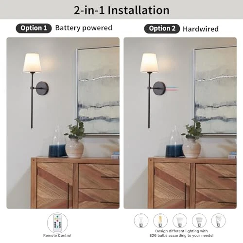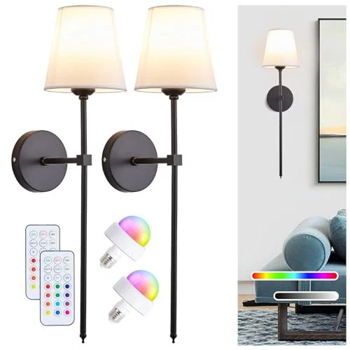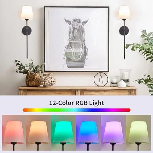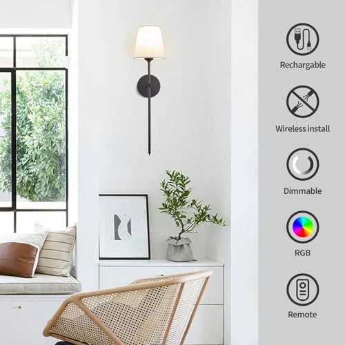 Return Policy Fast Delivery Trusted seller Battery Operated Wall Sconces Set of 2, Wireless Wall Sconce Rechargeable Wall Lights with Remote & Timer, 13 Colors Wall Sconces Battery Powered Dimmable Wall Lamps Wall Decor for Bedroom Living Room Product Description Easy to Install Wireless Wall Sconces: Indoor battery operated wall lights require no wiring and electrician, and all mounting hardware is included for quick and easy black battery wall sconce installation. Our wireless battery wall sconces are extremely flexible and you can place them anyw you need extra lighting. Battery wall light comes with bulbs and remote control Dimmable & Customizable Color: rechargeable wall sconces set of 2, adjustable brightness within 16 feet, 10 levels of adjustable brightness (10%-100%) and adjustable color temperature (3000K/12 RGB colors). With our indoor wall decor wall lights, create the warm, cozy light or bright, colorful effect you want for different occasions and moods Remote Control Wall Lamps: Adjust the brightness or turn the lights on & off from across the room with the included remote control. With the push of a button, you can create the perfect ambiance for any occasion, whether it's movie night or a cozy family night. You can set a timer for the wireless wall sconce to automatically turn off after 30 or 60 minutes, you don't have to worry about falling asleep or forgetting to turn it off Two Ways to Install the Bedroom Wall Lights: dimmable wireless wall sconces set of two support two installation methods. 1-Use our LED bulbs to mount directly on the ceiling or wall, no wiring or electrician needed. 2-Use any E26 head incandescent/LED/CFL/halogen bulb (not included) for hardwiring Wide Application: Fabric shade adds a touch of sophistication to these cordless wall sconces, and the removable design is easy to clean and maintain. Suitable for any space, our modern wall lamp can be used in bedrooms, hallways, closets, stairs, entryways, kitchens, beside fireplaces or as a night light. With its sleek design, it complements a variety of home decor styles while providing ample lighting w you need it High Efficient Customer Service: We are committed to providing our customers with high quality rechargeable wall sconce lighting and friendly after-sales service. If your wall sconce light has any defects or stops working within 1 year, we will help you troubleshoot or send you a brand new product. Please buy with confidence. Shipping Returns Payment Shipping Shipping is FREE to all addresses other than APO/PO boxes in the lower 48 states. All our stock ships from US-based warehouses. Shipped via USPS or UPS (depending on location and package weight) Unless stated otherwise, all orders will ship within 24-72 hours of your payment being processed. Check our feedback to see the great reviews of FAST shipping we offer. Returns Seller does not accept returns Payment We currently accept payment via eBay managed payments only. Once payment is cleared, we will dispatch your shipment within 1-3 business days. Please refer to the "Shipping" tab for more information regarding shipping speed to your destination.