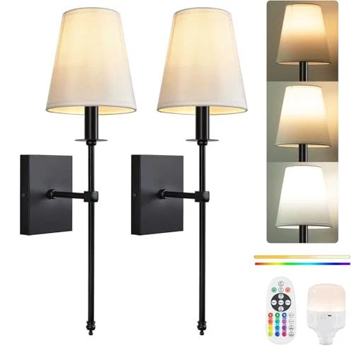 Return Policy Fast Delivery Trusted seller Battery Operated Wall Sconces Set of Two, Rechargeable Wall Lights with 5200mAh Dimmable Detachable Bulbs, 15 Colors and Remote Control, Wireless Sconces for Bedroom, Living Room Product Description Battery Operated & Easy Installation: This wireless wall sconces set of two is battery-powered and requires no wiring, making it perfect for any room. Install the wireless sconces set of 2 effortlessly without an electrician, enhancing your bedroom, living room, or hallway decor. These battery sconces wall decor set of 2 are ideal for renters and DIY decorators Rechargeable Bulbs with Extended Runtime: Each sconce features a rechargeable LED bulb with a robust 5200mAh capacity. Experience up to 24 hours of continuous lighting on the brightest setting or an impressive 100 hours on the dimmest. With 10 adjustable brightness levels (10%-100%), you can easily create the perfect ambiance for reading, entertaining, or unwinding. Vibrant Lighting with 12 RGB Colors & 3 Modes: Transform your space with 12 dynamic RGB colors and three light modes—3000K warm, 4000K natural, and 6000K cool white. Whether you're hosting a festive gathering or enjoying a quiet evening, these sconces wall lighting adapt to your mood and setting, making them a versatile addition to any room. These wall lights are perfect for setting the ambiance Remote Control & Auto-Off Timer: Adjust brightness, switch colors, or set the perfect lighting mode effortlessly with the included remote control. For added convenience, use the timer function to automatically turn off the lights after 30 or 60 minutes—perfect for bedtime routines, nighttime nursing, or energy savings Stylish & Versatile Design for Any Decor: Crafted with premium materials, these sleek battery sconces complement a variety of interior styles—from modern to rustic. This sconces wall decor set of 2 features a cordless, battery-operated design, making them perfect for bedrooms, living rooms, reading nooks, or as ambient night lights. Enhance your home's aesthetic while enjoying the freedom to place them wver you desire Shipping Returns Payment Shipping Shipping is FREE to all addresses other than APO/PO boxes in the lower 48 states. All our stock ships from US-based warehouses. Shipped via USPS or UPS (depending on location and package weight) Unless stated otherwise, all orders will ship within 24-72 hours of your payment being processed. Check our feedback to see the great reviews of FAST shipping we offer. Returns Seller does not accept returns Payment We currently accept payment via eBay managed payments only. Once payment is cleared, we will dispatch your shipment within 1-3 business days. Please refer to the "Shipping" tab for more information regarding shipping speed to your destination.