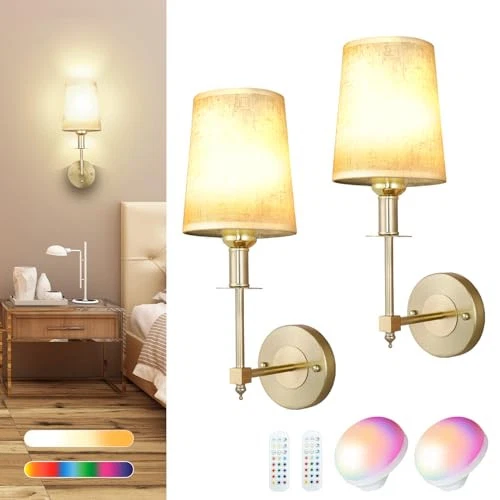 Return Policy Fast Delivery Trusted seller Battery Operated Wall Sconces Set of Two, Wireless Battery Gold Wall Light with 15 Colors RGB Rechargeable Magnetic Bulb, Indoor White Fabric Shade Wall Mounted Lamp for Bedroom Living Room Product Description 【Easy Installation & DIY Friendly】 Wireless and non-hardwired battery sconces for wall decor. Fast assembly without the need for an electrician. Perfect for DIY enthusiasts as it can be easily installed anyw without wiring.The golden discs paired with the chassis highlight the luxurious feel of the wall sconce. 【Battery Operated & Convenient】 Powered by a rechargeable battery, it is convenient to charge. It can be fully charged in 3-5 hours and can last up to 50 hours when fully charged, meeting the needs of night lighting for a week. Comes with a remote control for easy operation. Great for spaces like bathrooms, bedrooms, hallways, and living areas. Also valuable during power outages. 【Adjustable Brightness & Long-Lasting】 Dimmable wall lights with 5 levels of brightness. Lasts 15-50 hours on a single charge. You can create the perfect lighting atmosp to enhance any room in your home. 【Colorful Ambiance & Versatile】 Rechargeable RGB LED bulb provides warm, natural, white light, and multiple RGB colors. Features flash and smooth modes for customizable atmosps. Perfect for reading, working, studying, and various living spaces. 【Indoor Wall Decoration】 The wireless battery operated wall sconces lamp is available in classic gold and modern black, making it a versatile addition to various décor styles. The gold option complements classic and luxurious interiors, while the black version is ideal for modern and minimalist settings. These color choices make the wall light perfect for placement in areas such as fireplaces, picture frames, bedrooms, hallways, entrances, living rooms, and staircases. It's an excellent choice for enhancing your home's decor. Shipping Returns Payment Shipping Shipping is FREE to all addresses other than APO/PO boxes in the lower 48 states. All our stock ships from US-based warehouses. Shipped via USPS or UPS (depending on location and package weight) Unless stated otherwise, all orders will ship within 24-72 hours of your payment being processed. Check our feedback to see the great reviews of FAST shipping we offer. Returns Seller does not accept returns Payment We currently accept payment via eBay managed payments only. Once payment is cleared, we will dispatch your shipment within 1-3 business days. Please refer to the "Shipping" tab for more information regarding shipping speed to your destination.
