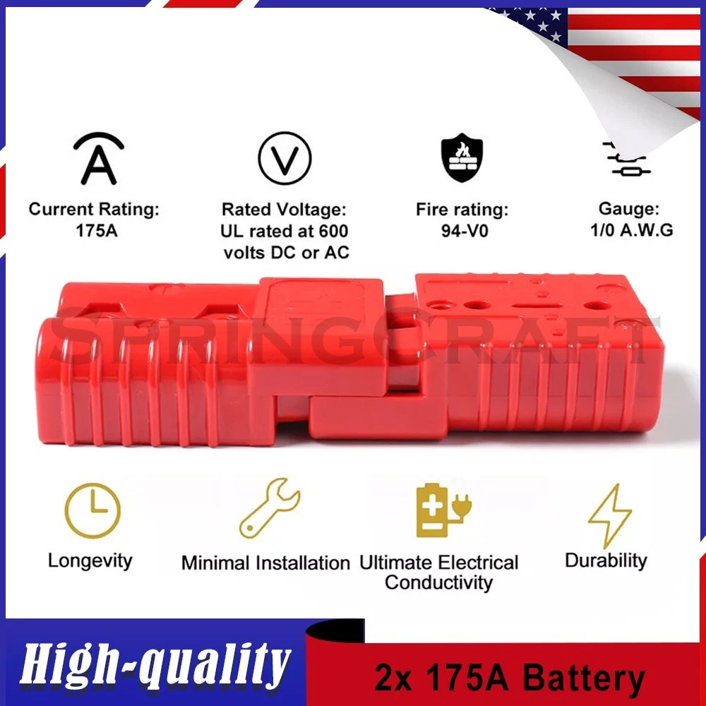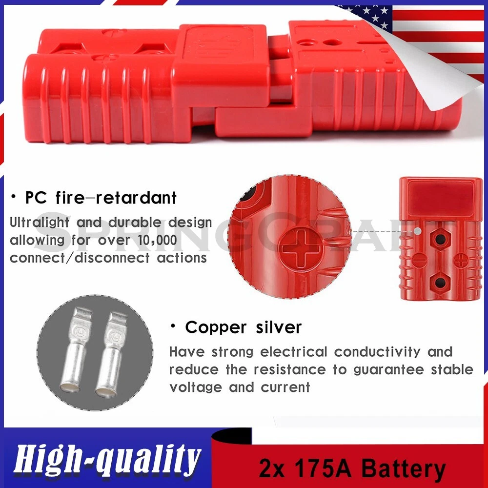 Color: Red Vintage Part: No Item Width: 2 1/8" (Single Plug) Finish: Gloss Universal Fitment: Yes Shape: Rectangular gtin13: Does Not Apply Features: Easy Cleaning, Easy Installation, Heavy Duty Rated Voltage: 600V Item Length: 3 1/8" (Single Plug) Material: Polycarbonate Plug & Copper Pin UPC: Does Not Apply Type: Battery Quick Connect Disconnect Item Height: 1 in (Single Plug) Brand: Unbranded Included: 4PCS Terminal Pins, 2PCS Battery Plugs Performance Part: Yes Current: 175A Wire Size Range: 1/0 Gauge (AWG)