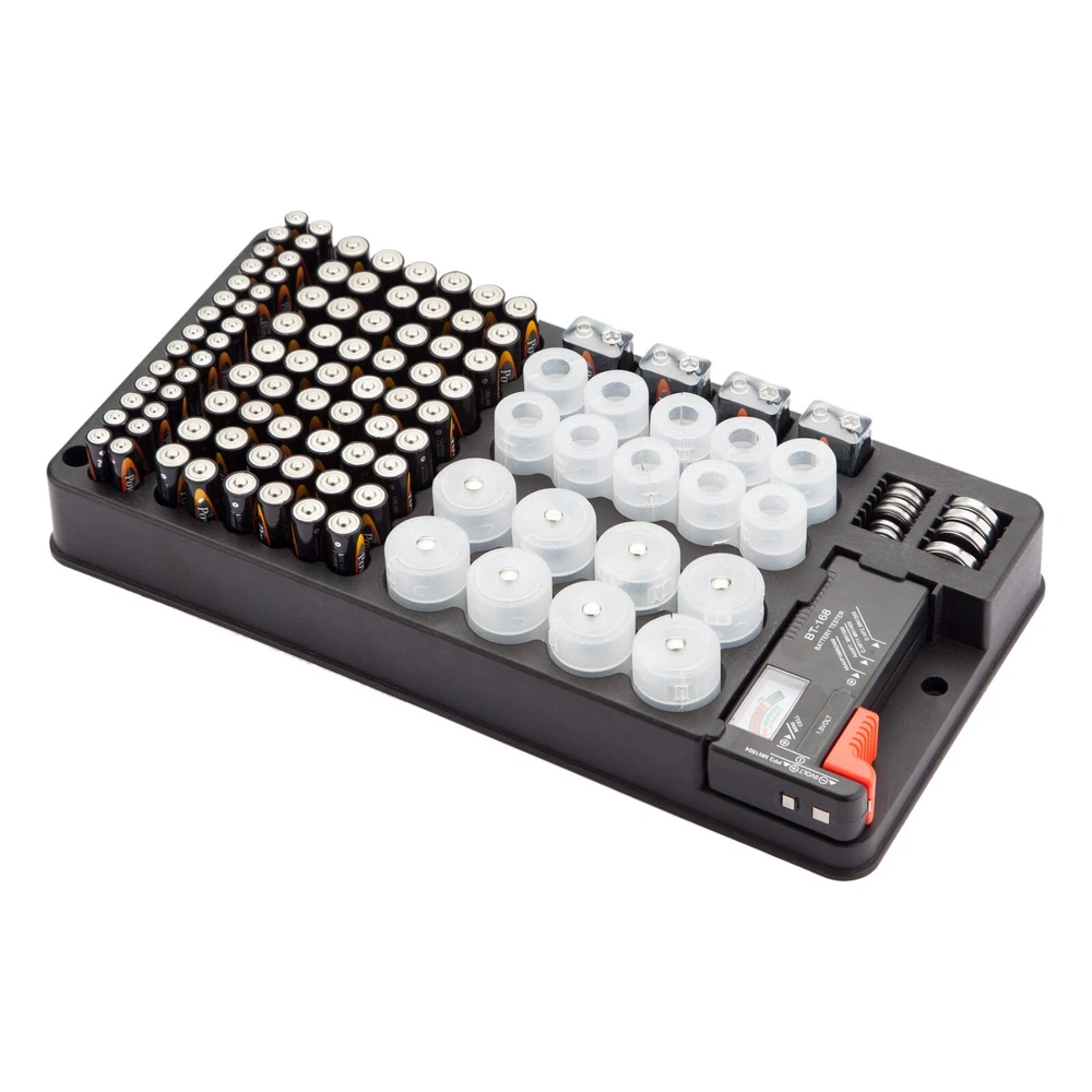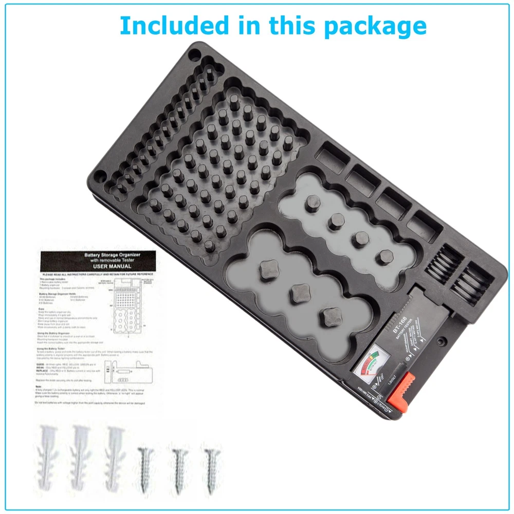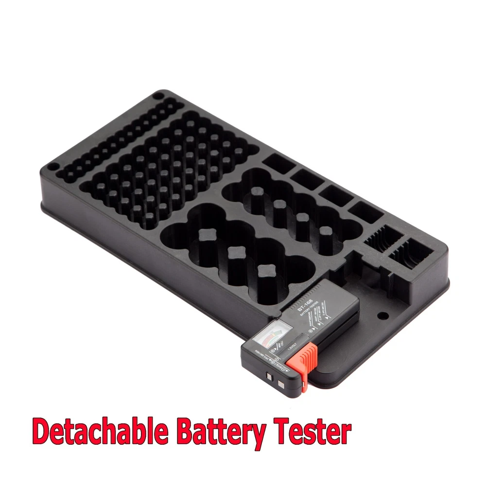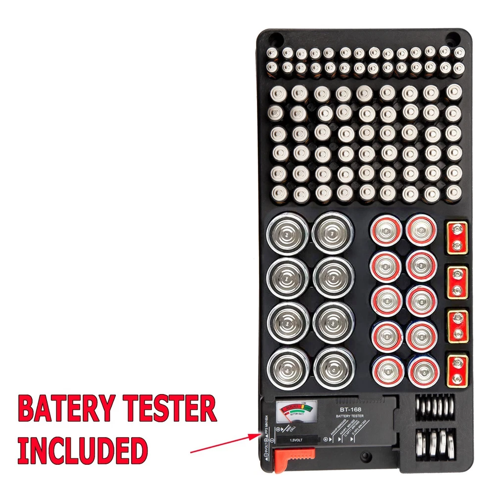Free & Fast Shipping from Real US Warehouse Featured Item Description - Holds Up to 116 Batteries - 100% brand new and high quality - This battery storage case easily stores and organizes batteries, can hold up to 116 batteries, 54 x AA batteries, 28 x AAA batteries, 10 x C batteries, 10 x D batteries, 4 x 9V batteries, 12 batteries button - Battery organizer and tester design, easily check if the batteries are good, it can test different types of batteries, even rechargeable ones. A must buy for anyone who uses regular or rechargeable batteries on a regular basis. - Battery tester is removable, making sure to slide the tester into the slots on the organizer to keep it secured in place - Mount it on wall or in your tool cabinet to save your drawer space, easy for you to see what you need, Mounting hardware is included. - Specification Material: PP environmental protection material - Color: Black - Size: 14" X 7" Included in this package - 1 x Battery Holder - 1 x Battery Tester - 1 x Manual - 3 x Screws and 3 x Screw Anchors Shipping & Payment Payment - We require Paypal payment only. - Your order will be cancelled if the payment is not received in one week. We offer Fast US Shipping / Not Ecomomy / Never China - There is a big difference between US Shipping and shipment made from foreign countries - There are some sellers who place orders from China after receiving US orders - If you order your urgent part from these sellers, you would have to wait a month to get it - Our orders are shipped daily from Georgia USA warehouse - Free Tracking number is provided for this item - Many years of experience to provide the fastest deliver solution for our valued customers - Please place an order with us. You will be pleasantly surprised by our service Shipping - Delivery area: We are only shipping within 48 continental United States. - Delivery method: USPS Priority & USPS First Class. Choose Priority for fast delivery. - Handling time: 1 business day after receiving payment. If USPS is open, we are open too. - Not all our items are shipped with the tracking number. - Buyers are responsible to provide us with the correct address. Please confirm your address. Handling And Return - We accept return within 14 days after delivery. - Defective items will be exchanged or fully refunded on buyers request. - 15% restocking fee will be charged on non defective items. - All items need to be returned in original package with all the supplies. - Shipping and handling fees are non-refundable under any circumstances. - Our goal is 100% customer satisfaction. - Got a problem? No Problem. Contact us by eBay message system. - We will reply promptly during business hours. Customer Support - Please do not open a case or leave us a bad feedback. This can only delay our service. - Mon~Fri: 9AM to 5PM | Sa:t 9AM to 12PM | Sun: Closed (Eastern Standard Time) - If you are happy with your purchase, please leave us a 5 star feedback. Thank you. Copyright 2018 Designed and Maintained by miniduino an eBay Store