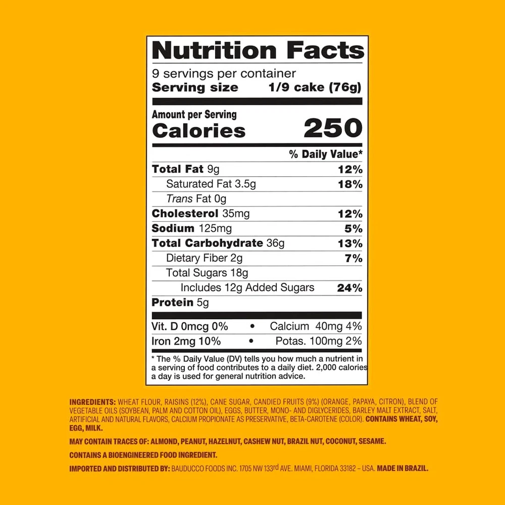 Panettone is a moist, soft & fresh cake made with candied fruits & raisins or chocolate chips - 24.0oz (Pack of 1). The secret ingredient that makes our panettone fluffy and delicious is the original mother dough, brought from Italy by Mr. Bauducco in the 1950s. In our traditional 52-hour process, a bit of this mother dough is saved each day to mix into tomorrow’s batch, giving our panettone its special flavor. OUR FAMILY TRADITION: Bauducco Classic Panettone is more than a delicious treat; it's a cherished family tradition. Passed down through generations, our Italian family recipe ensures the tradition lives on. Made with pride, we know you'll enjoy it as much as we do. FEATURES: ● Moist and Fresh Classic Panettone ● Traditional Italian Family Recipe ● Slow Rise Dough THE TRADITIONAL ITALIAN RECIPE IN YOUR HOME: When it comes to great meals, the value of tradition is undeniable. There's something special about sitting at a table full of dishes passed down through generations. It's a reminder of the past and a way to connect with our ancestors. FOR ANY OCCASION: The versatility of the Bauducco product line is endless. There are delicious options for any occasion and any moment. They can even be used as an ingredient! So, no matter your taste, there's a Bauducco product for you. A perfect delicious gift to your family and friends. Bauducco is known for the moist and fresh Panettone, but there's so much more to it. Enjoy light and crispy wafers in various flavors, and toasts baked to perfection to start your day right! Here, everything is made with love. Disclaimer: These statements have not been evaluated by the FDA. These products are not intended to diagnose, treat, cure, or prevent any disease. MOIST, FRESH, READY TO EAT: Bauducco Classic Panettone is known for its moist, fresh, and aromatic qualities, making it a delightful treat any time of year. GREAT GIFT OPTION: A delicious choice for sharing with family and friends, perfect for any occasion. ORIGINAL RECIPE: Crafted by the Bauducco Family since 1952, using the same authentic Italian recipe. SLOW RISE DOUGH: The dough undergoes a 52-hour process, ensuring the finest quality. VERSATILE INGREDIENT: Bauducco Classic Panettone can be used to make various recipes such as French Toast, Bread Pudding, Breakfast, and more. FUN IN THE KITCHEN: Get creative and have fun experimenting with different combinations, such as pairing with ice cream or simply with a hint of butter. #1 PANETTONE IN THE US: Made by the Bauducco family, now in its third generation, maintaining the tradition of excellence since 1952.