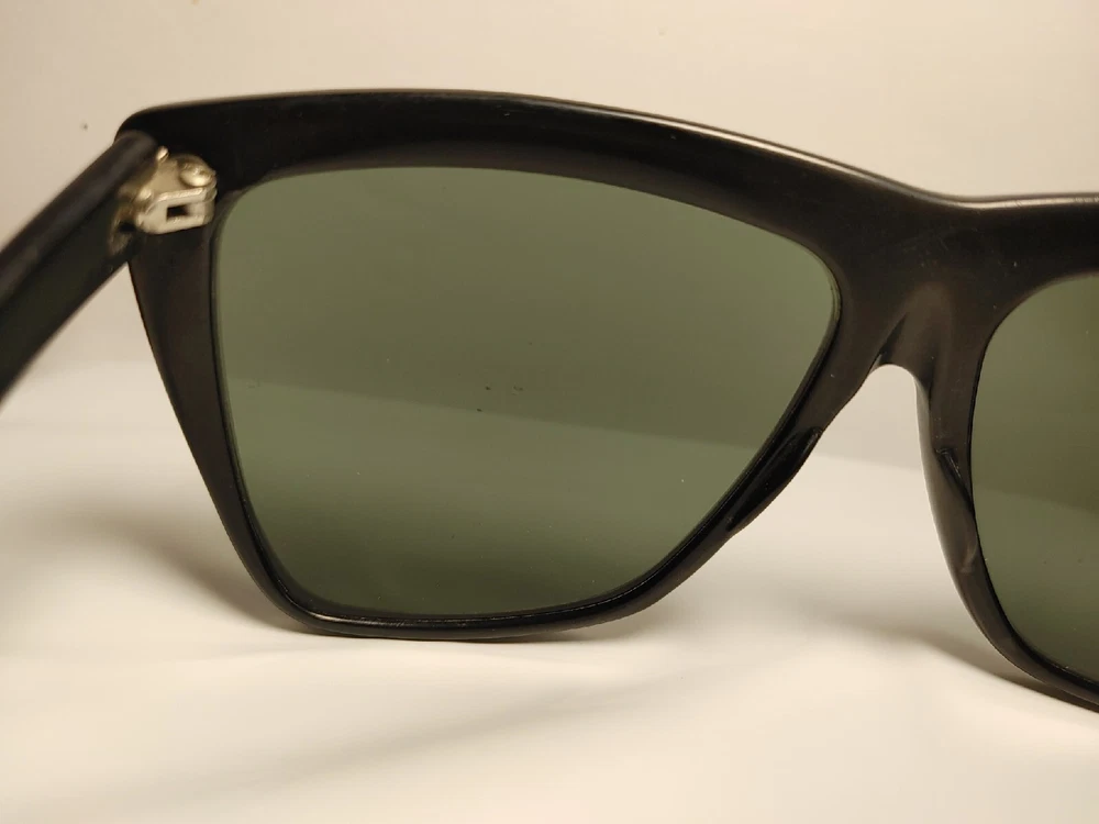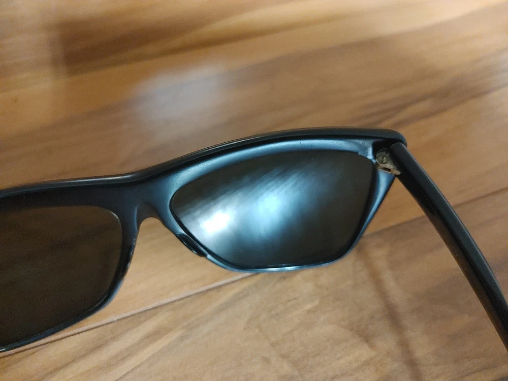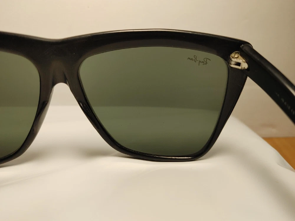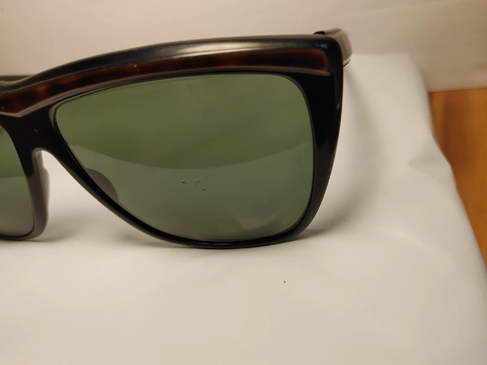 Bausch & Lomb Ray Ban USA W0353 G15 Crystal Tort Marnie WAYFARER Sunglasses. Overall good condition for their age. Lenses do have some scuffs and scratches and appear to have been dropped on something on the left lense. Left side has shifted back slightly (pictured) but does not effect how they close or feel while wearing. The original stamps are very warn but are still able to be faintly seen in the exact right light at the exact right angle.