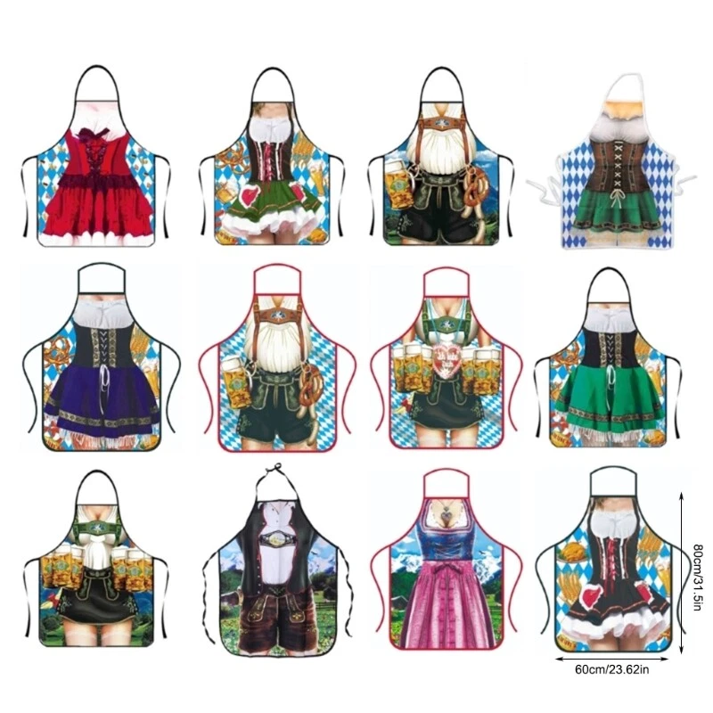 Bavarian Novelty Apron Oktoberfest Bavarian Kitchen Aprons for Women Men Couple Features: and Get ready for Oktoberfest with this Bavarian Cooking Apron! Made from fine polyester, features a unique beer festival that add to the festive feel. The apron is and easy to adjustable straps for a comfortable fit. for adults who love Oktoberfest and enjoy party activities, this apron is a must have for those looking to the festivities in Whether you're attending an Oktoberfest celebration, hosting a party, or having an outdoor cookout, this apron will add interactive fun while protecting your clothes. German culture with this beautiful and functional apron. s suitable for various event and will impress your guests! Specifications: Polyester fibre Size: approx.80x60cm/31.50x23.62in Color: As the pictures shown 12 Pattern Optional: As choose. Quantity: 1 Pc Package Includes: 1 Pc x Oktoberfest Apron note: Please allow 0-1cm error due to manual measurement. please make sure you do not mind before you bid. Due to difference between different monitors, the picture may not reflect the actual color of the item.