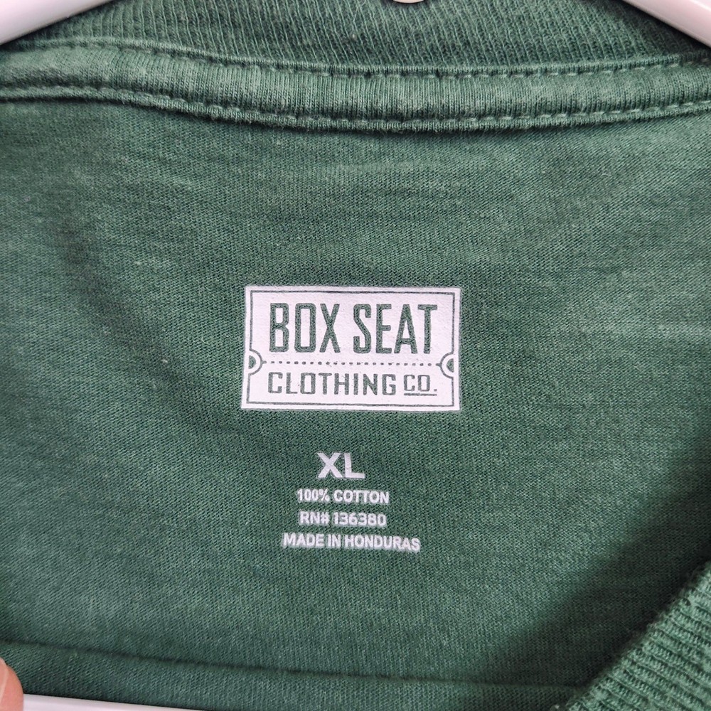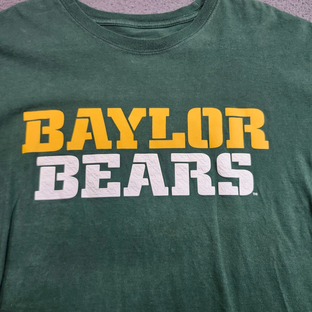 Baylor Bears collegiate t-shirt features a bold screen-printed graphic on the chest and a detailed bear head logo on the left sleeve. Crafted from comfortable 100% cotton in a classic forest green, this short-sleeve tee is perfect for game days or casual campus wear. The shirt shows light pilling under the arms consistent with gentle use. Brand: Box Seat Clothing Co. Material: 100% Cotton Color: Green Sleeve Length: Short Sleeve Neckline: Crew Neck Pattern: Graphic Fit: Regular Style: Athletic Theme: NCAA, Baylor University Origin: Made in Honduras Measurements: • Chest (Pit to Pit): 23.5" (47" doubled) • Length (Shoulder to Hem): 27.5" Keywords: Waco Texas, Big 12, College Sports, NCAA Fan Gear, Sic 'Em, University Apparel, Gameday Outfit, Alumni, Student Life, Sporty, Casual, Collegiate Aesthetic * All items have been cleaned and disinfected * We stand behind all items we sell so please contact us if you have an issue with any order * Look at pictures for any imperfections " Holes, Stains Etc.."