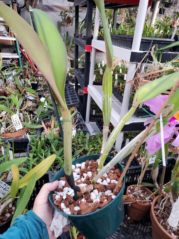 This is a division of Rlc. (Bc.) Willis Harrington (Margarite Fournier x c. Trimos). It was registered by S.Low in 1937. It came from Canaima Orchids.I believe it originated at Lines Orchids in the states. A lot of special orchids were sent to American orchid nurseries during world War 2 to safe guard from bombings. It just tested clean of virus. This is a nice, shapely pink cattleya. Flowers are 7 inches or more across! It blooms in March normally. It takes typical cattleya culture. Easy to grow and bloom. It was just re-potted so not established yet. The flower pictures are of this plant.. the plant pictures are what you are bidding on. It is the ONLY piece I have to sell.