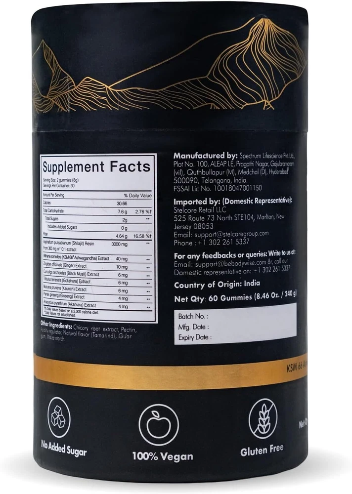 Be Bodywise Pure Himalayan Shilajit Gummies Gold I Lab Tested I No Added Sugar I Ashwagandha, Gokshura| Fulvic Acid & 85+ Trace Minerals I for Men, Women I Non-GMO I 100% Natural & Organic I 60 Gummy