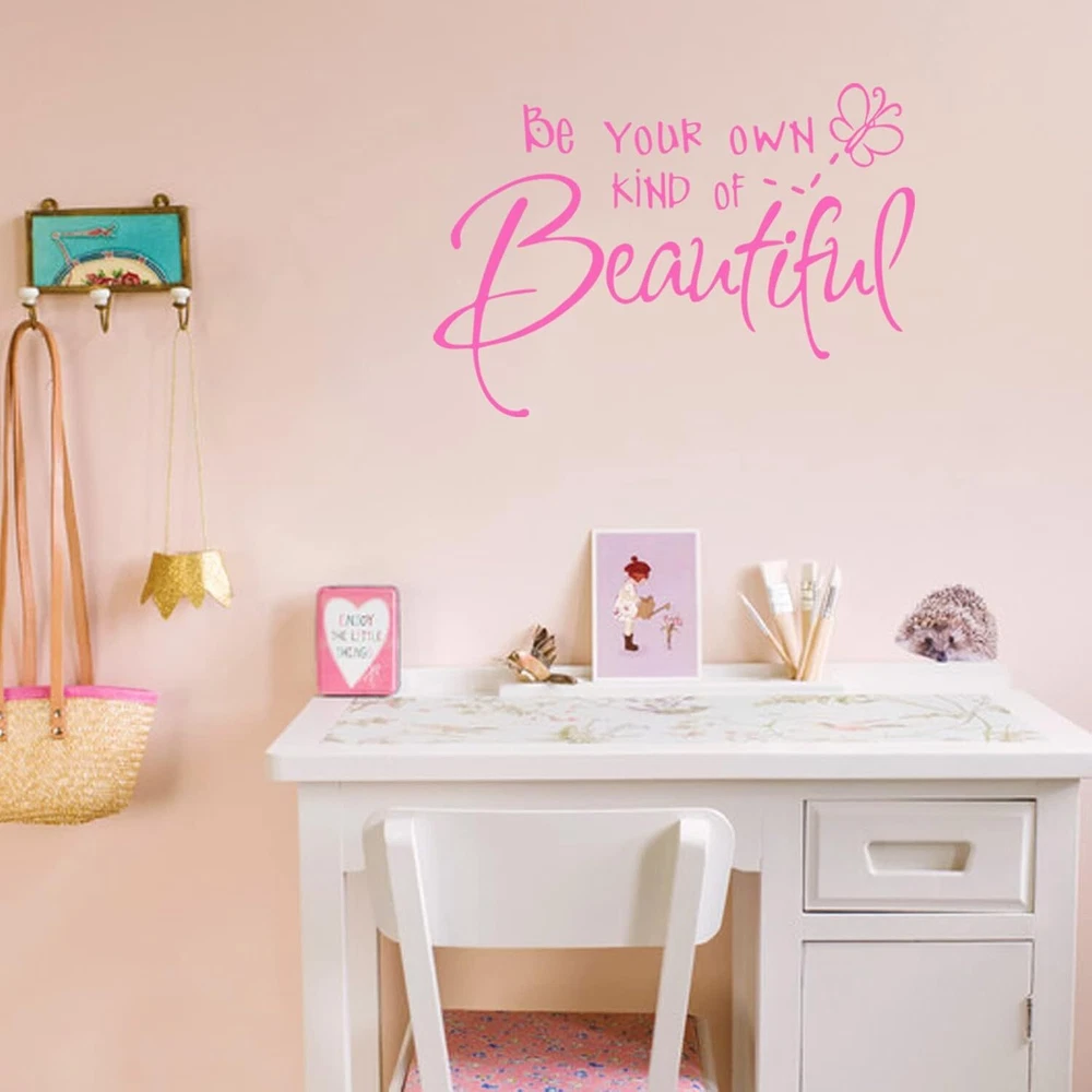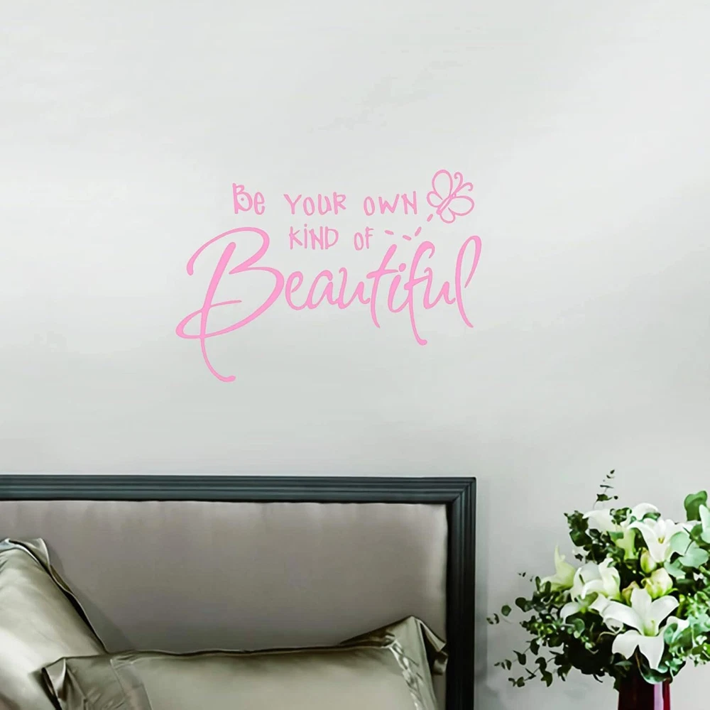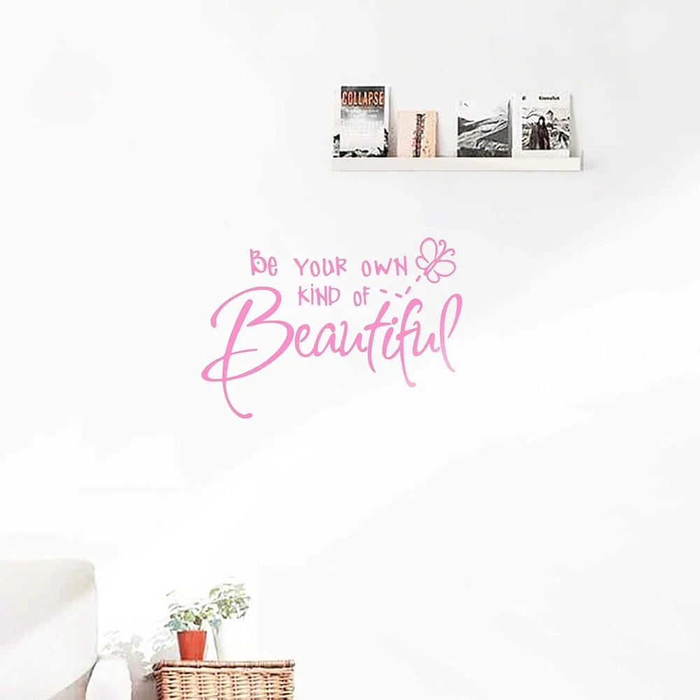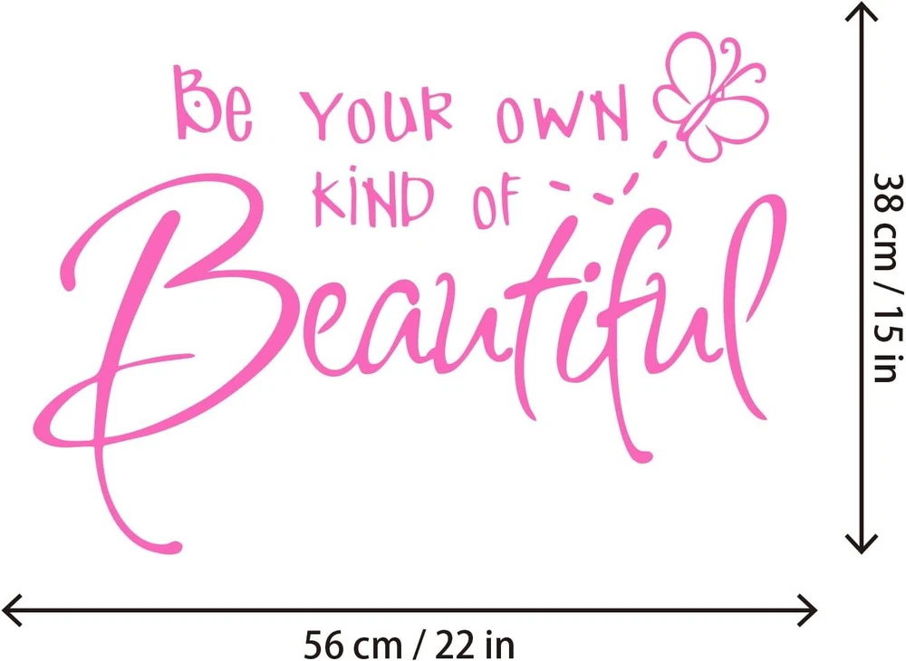 Be Your Own Kind of Beautiful Wall Stickers Quote, CUNYA DIY Vinyl Pink Product Details Brand: Lnrkai Color: Pink Recommended Uses For Product: Window, Wall Theme: Butterfly,Teen Cartoon Character: Butterfly Special Feature: Waterproof Number of Pieces: 1 Style: Minimalist Age Range (Description): Kid Reusability: Single Use Item Form: Butterfly Pattern: Letter, Insect Indoor/Outdoor Usage: Indoor Finish Type: Painted Animal theme: Butterfly Water Resistance Level: Waterproof Number of Items: 1 UPC: 191813919334 Package Dimensions: 11.18 x 6.61 x 0.67 inches Item Weight: 2.08 ounces Manufacturer: CUNYAK Item model number: CY-01 Surface RecommendationMaterial: WallPolyvinyl Chloride ShapeUnit Count: Irregular1.0 Count Butterfly wall decor sticker dimensions: 38x56cm / 15x22inches; Material: High Quality PVC, durability, waterproof, no harm to human body; Pink Come with transfer film, easy to peel off and sticker on; Hang and remove wall decals in seconds. Be your own beautiful sticker, not only a visual decoration, but also an encouragement Suitable for any clean smooth wall. They are an good ideal DIY home decorations for living room, bedroom, kids room, office, dormitory, windows, farmhouse decor. If you have an airbnb space in your house. This saying was perfect to "spruce up" the shared bathroom of the space. There are no clear plastic pieces around the letters at all, only the actual letters themselves so it looks like it was painted on and not a plastic decal. Like seriously it looks gorgeous! It is the perfect size to be a bold statement in the space. 38x56cm / 15x22inches After you reading how many people had epic fails in installation, you may give up the purchase. In fact, please be patient and get a perfect creation. How to use Step 1: You can cut out the butterfly and the dashes if you wanted it to look a bit more adult, and gender neutral. Step 2: It will take you about 20 minutes to assemble the sticky transfer plastic film on the front. It took A LOT OF PATIENCE and taking you time to adhere it. Would have gone much faster with two people. Step 3: After assessing where to place it, you peel off the backing and tried to adhere it to the wall. This is definitely where 2 people would have worked soooo much better. Again, patience, it took about 5 minutes just to get it attached properly to the wall. Step 4: After reading how many people had epic fails in installation, you can painstakingly "etched" each part of each letter to the wall with the back of my thumb nail to make sure the letters adhered as well as possible. I believe this step is what made it look so good. Step 5: VERY SLOWLY peeled the sticky transfer film off the wall. Voila! Amazing bold statement on the wall!