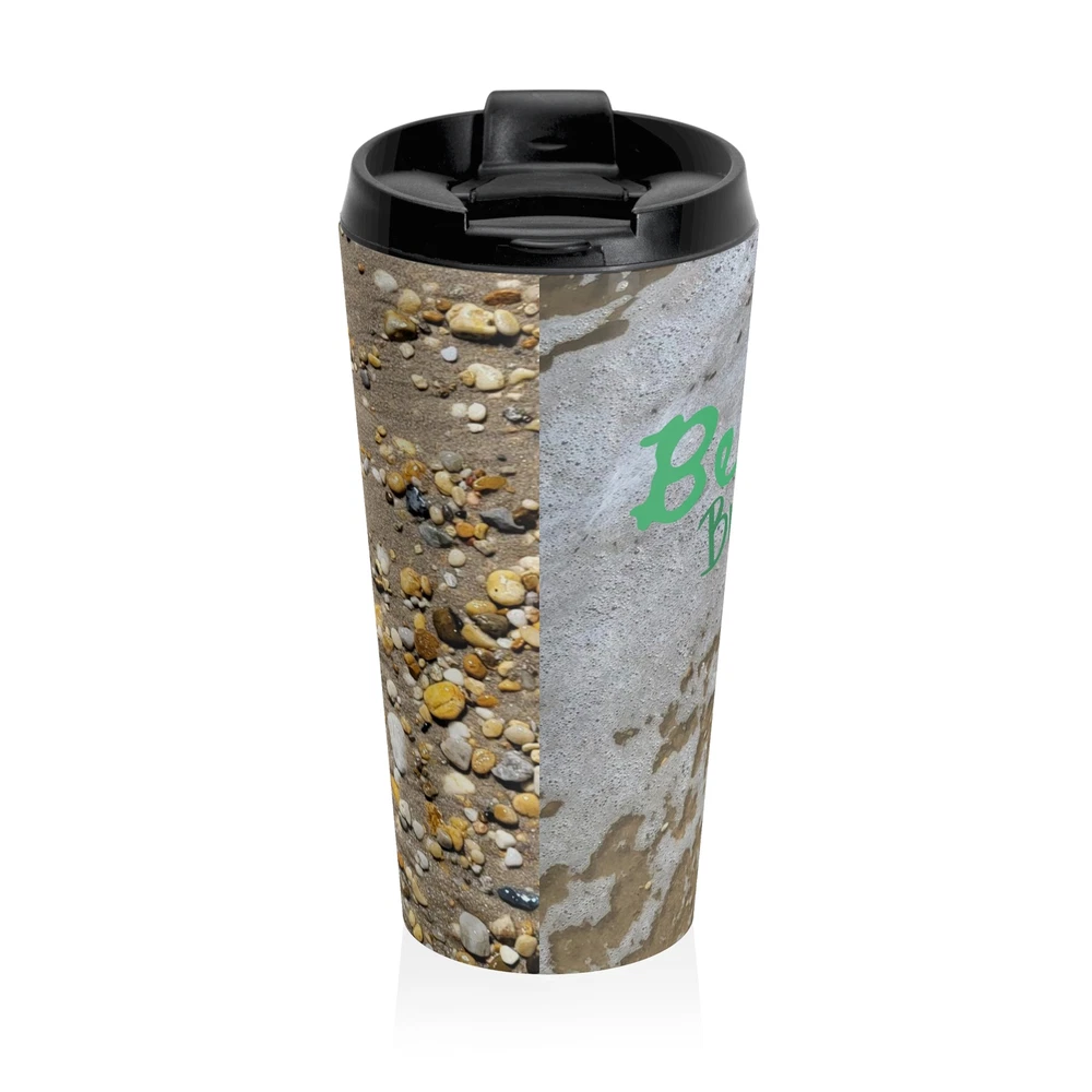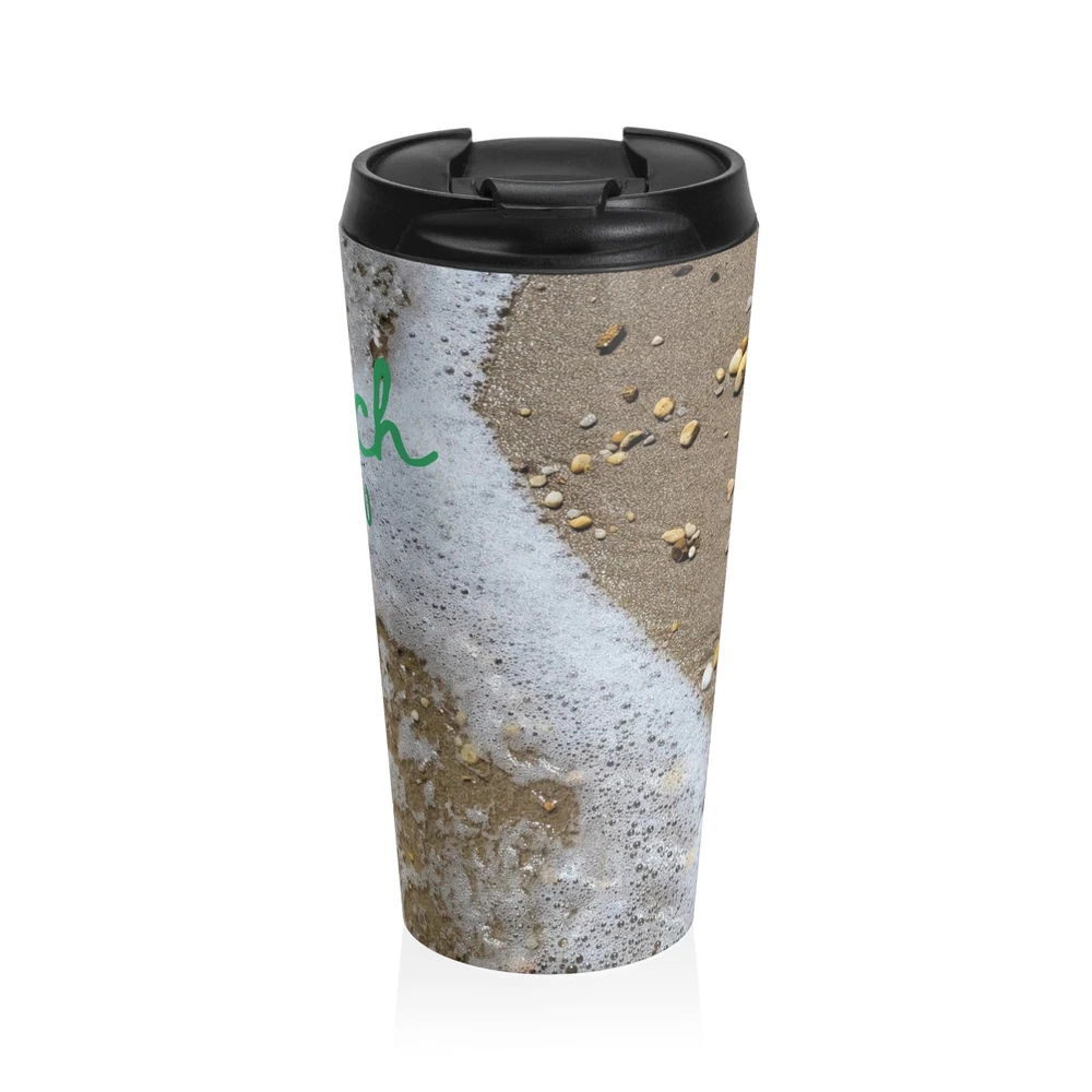 "Beach Brew" Bring your tasty brews with the beach into your everyday. Irreplaceable item for a busy everyday life, this stainless steel mug will keep drinks at the right temperature for hours on the go. High quality sublimation printing makes it an appreciated gift to every true coffee or tea lover. .: Stainless steel .: 15oz (0.44 l) .: Rounded corners .: Black plastic lid