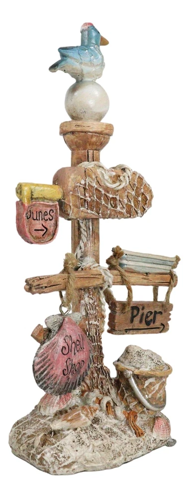 • This Beautiful Marine Pelican On Post Sculpture is 9.5" tall, 5" long and 3.25" deep approximately. It weighs about 11 ounces. • This Beautiful Marine Pelican On Post Sculpture is made of designer composite resin, hand painted and polished individually. Color Tone may vary from pictures slightly. • Introducing our exquisite Pelican Bird Perching on Nautical Post Sign With Seashells and other beach icons, the perfect addition to your coastal-themed decor! Crafted with meticulous attention to detail, this charming piece captures the essence of seaside tranquility. The graceful pelican, with its lifelike features, perches elegantly atop a rustic nautical post sign adorned with nautical elements, adding a touch of oceanic allure to any space. • Props used in photos are not included with the item, they are meant to provide size perspective of the item.