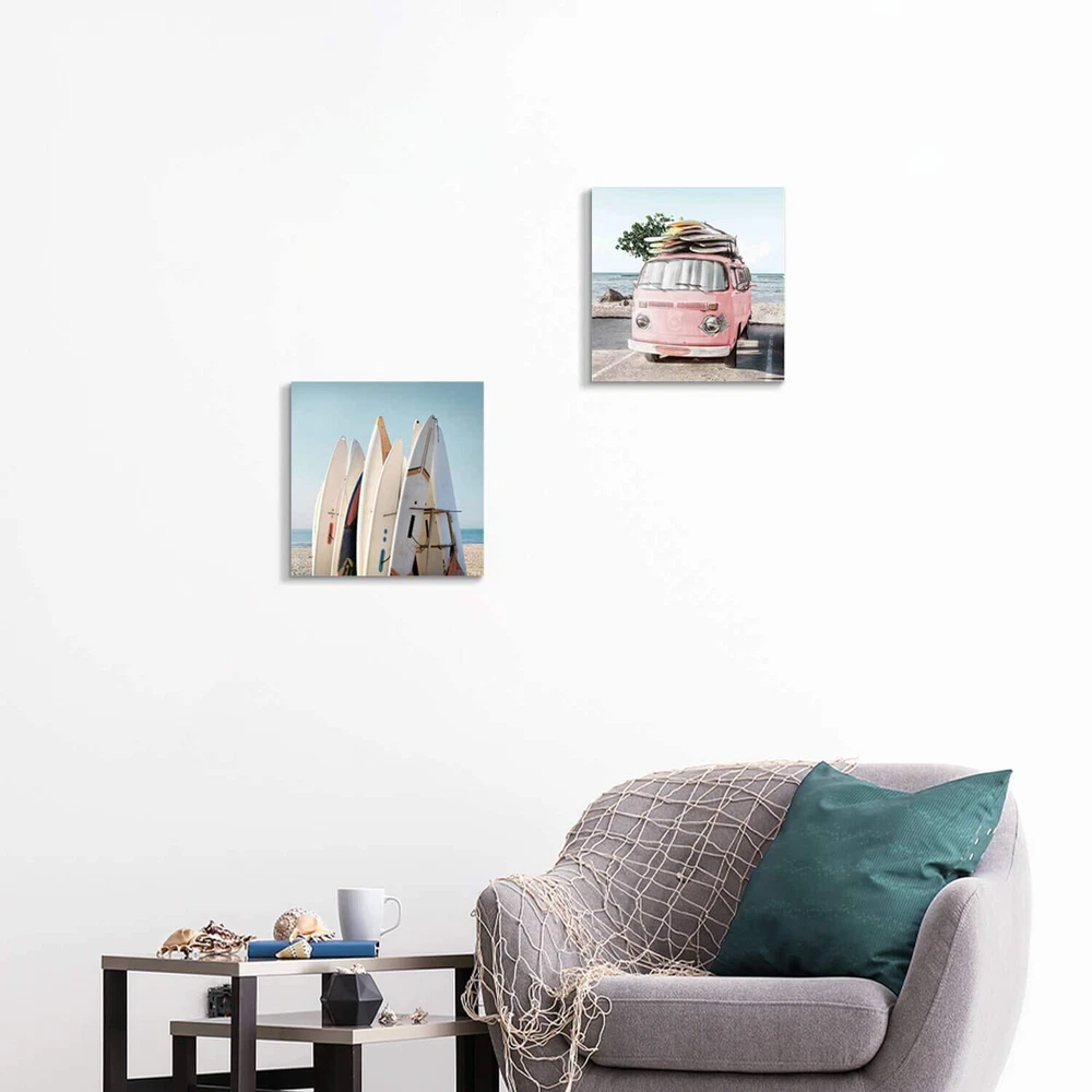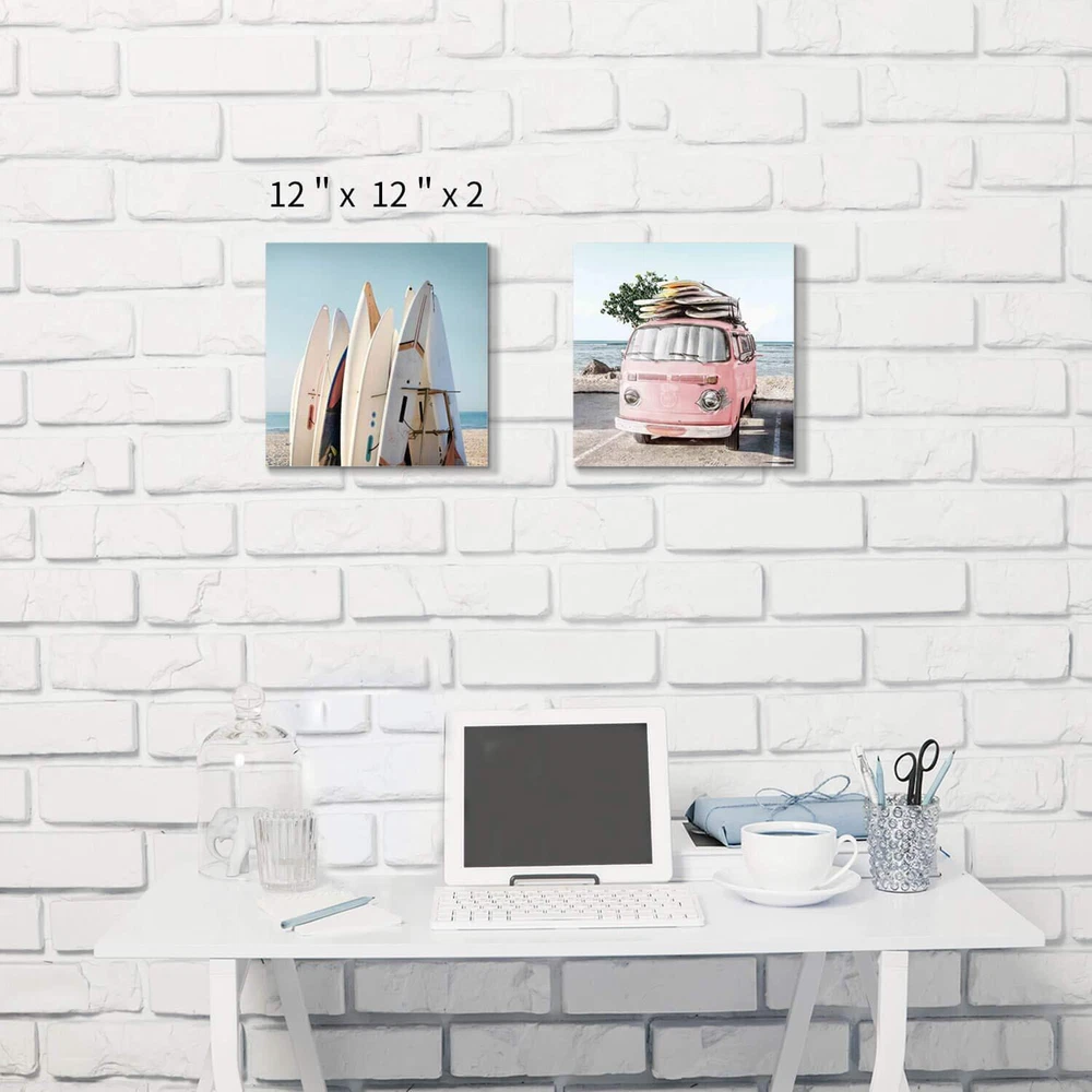 Wonderful seascape pictures and comfortable color matching give you a visual feast. You can enjoy your seaside holiday in the hot summer by hanging this beach artwork for walls in your house. Come and get it right now! Coastal Artwork for Walls: Liven up your room with this stylish and decorative beach car canvas art, give a piece of perfection to yourself or someone really special, wall art beach is ideal to adorn a blank wall in the entryway or bedroom… Beach Theme Canvas Wall Art: High resolution printed with premium machine and nice wrapping technology. Color is more natural and brighter, will not fade, for indoor display for 10 years. Beach Paintings on Canvas: Each beach wall art canvas is individually hand wrapped and printed to very high standards. With wall-mounting hooks included, beach pictures wall art is ready to hang right away. Please be aware that actual colors may a little vary from those shown on your screen. Beach artwork wall decor, beach canvas picture, wall art canvas, multi panel canvas wall art, art pictures for wall, tropical pictures wall art, wall pictures for bedroom, wall picture living room, multi canvas wall art, landscape canvas art, modern wall canvas art, canvas wall art for bedroom, canvas art wall decor. Beach Pink Car Artwork for Walls: A row of white surfboard & pink car with surfboard and trees on the road near the ocean, the two panels beach theme wall art show the beautiful shoreline views and bring you a fresh look to your home or office Coastal Pictures Wall Art: These artful coastal theme wall art look lovely side by side, you can also hang them up in different rooms to carry a cohesive aesthetic throughout your abode Beach Canvas Wall Art: Artful beach print wall art is stretched and gallery wrapped over separate stretcher bar frames for a gallery-wrapped look, and is printed on canvas using fade-resistant inks Beach Pictures Wall Art: This beach art print comes with hanging accessories so you can easily upgrade your space before tackling your projects, ready to hang Beach Paintings for Wall: A set includes 2 panels beach canvas art. Clean dust lightly on beach wall canvas with a soft and lint-free cotton cloth. Copyright licensed image with high resolution definition