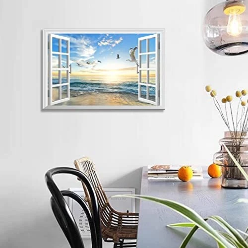 Menu 1. We require immediate payment. 2. We currently accept payment via eBay managed payments only. 3. Once payment is cleared, we will dispatch your shipment within 1-3 business days. Please refer to the "Shipping" tab for more information regarding shipping speed to your destination. Beach Pictures Decor Wall Art Fake Open Window Ocean Seagull Birds Blue Natural Scene Canvas Prints for Living Room 48x32 Product description Important: Please confirm that the product you purchased is sold by , otherwise it may be a paper print or a low-quality canvas imitation Canvas Size: 48"x32", The "frame" shown in the image is not an actual frame but part of what is printed on the canvas Creative wall decor: This is a vivid beach seagull bird nature ocean photo, false window frame style wall decoration looks like a real scenery, suitable for office, living room, bedroom, kitchen, bathroom, basement and other without Space wall decoration for building windows Easy to hang and maintain: Each artwork is stretched on a solid wood frame, equipped with hooks and accessories for easy hang, the prints are waterproof, you can wipe them with a damp cloth After-sales service: If the product is damaged during transportation, you can exchange it or get a refund at any time PLEASE MESSAGE US IF YOU HAVE ANY OTHER QUESTIONS, AND MANY THANKS FOR READING ALL OF THIS. Copyright ©#. All Rights Reserved.