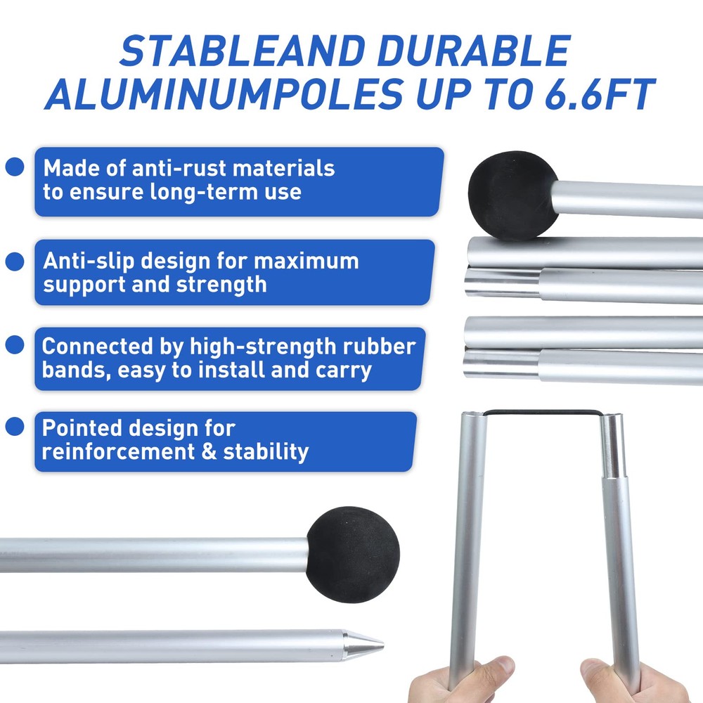 Large Family Sun Shelter - beach tent sun shade canopy's four 6.6FT tall aluminum poles keep entire canopy area stays at full height that increasing the shaded area by 50%.10x10FT is enough for 6-8 people. 7x7FT is enough for 3-6 people. It holds up well in the wind because of the extra big sand anchors and high quality rust-proof aluminum poles.Providing enough space for couples, families and friends' party. FOUR CONVENIENT FAMILY SIZES. Choose the ideal that works for your family needs Advanced Sun Protection - Our sun tents for beach and outdoor crafted with high quality elastic Lycra fabric, offering UPF 50+ sun coverage protection. Can block up to 98% of harmful UV rays, reduce sunburn or glare with protection coating making it ideal for kids or adults laying out. Superb shade windproof, water resistance beach sun cover keep you protected on both sunny and rainy days. Combined with excellent 4-sided ventilation performance enjoy the sea breeze in the shade of the beach Quick and Easy Outdoor Setup - Each beach tent comes with stability poles, anchors and windproof ropes that let you use it over sandy beaches,thick grassy areas, or even in rocky camping spots. Equipped with sand shovel to quickly hold large amount of sand to anchor and overfill all 4 sandbags.Foldable thickened rust-resistant aluminum poles has a pointed stake at the bottom can stick them straight into the sand or ground.The sturdy EVA foam ball on top of the poles won't tear the fabric Easy Assemble and Portable - Prepare the beach tents sun shelter pop up in a matter of minutes. Just stretch out canopy and fill flarge sand anchor fully, use the foldable pole to support the tent. Secure the fabric on the EVA ball with bungee cords and pull tight. Pull sandbags away to tighten structure. If needed, bury sandbags and use the ground pegs to add windproof ropes. And when the trip is over, you can easily take it off. The easy-to-carry waterproof travel bag weighs only 6.5 pounds! All-Purpose Pop Up Beach Tent - For family trips to the beach,weekend tailgating party or summer camping picnics,cool beach umbrellas for extra enjoyment on hot days. Comes with a portable storage bag easily accommodates Lycra canopy,folding aluminum poles,tent pegs,elastic cords,sand shovel etc. you can popup almost anywhere. This portable pop up beach tent sun shelter can become your go-to companion when going to the beach, camping,park,picnic party,fishing backyard barbecue or music festival!