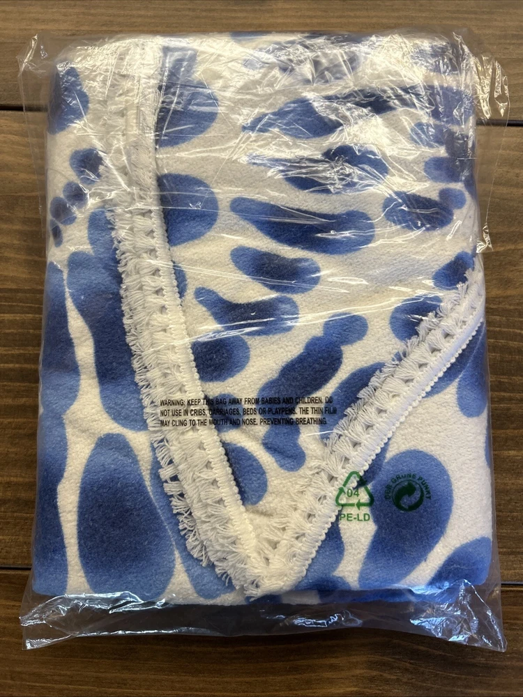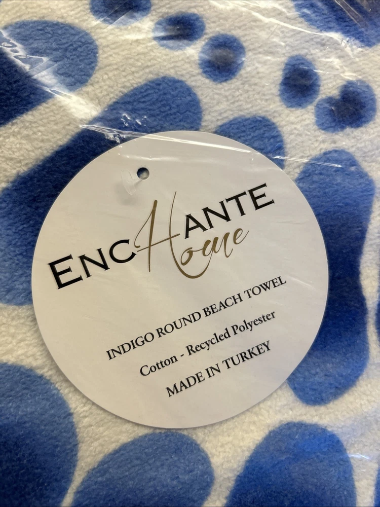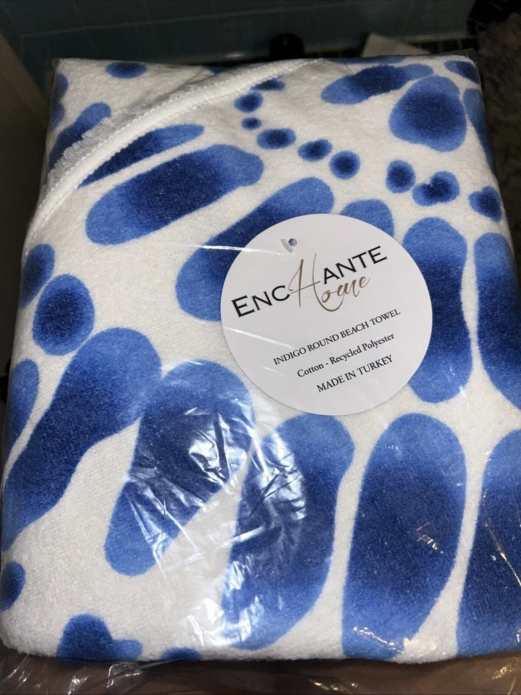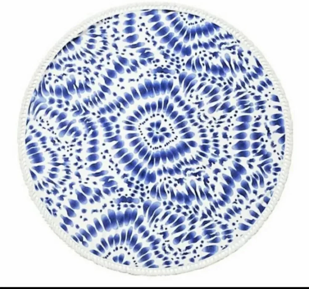Beach Towel 60" Round Fringe Boho Chic Indigo Blue White Enchante Home Cotton