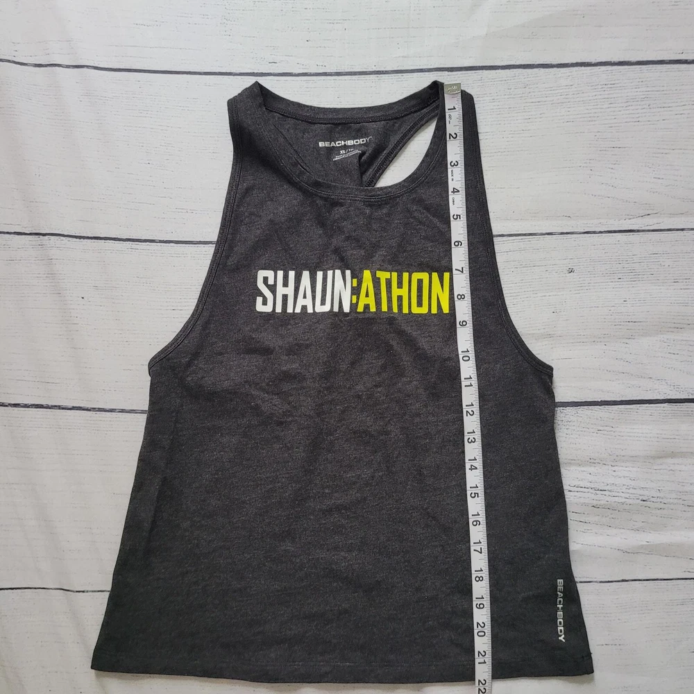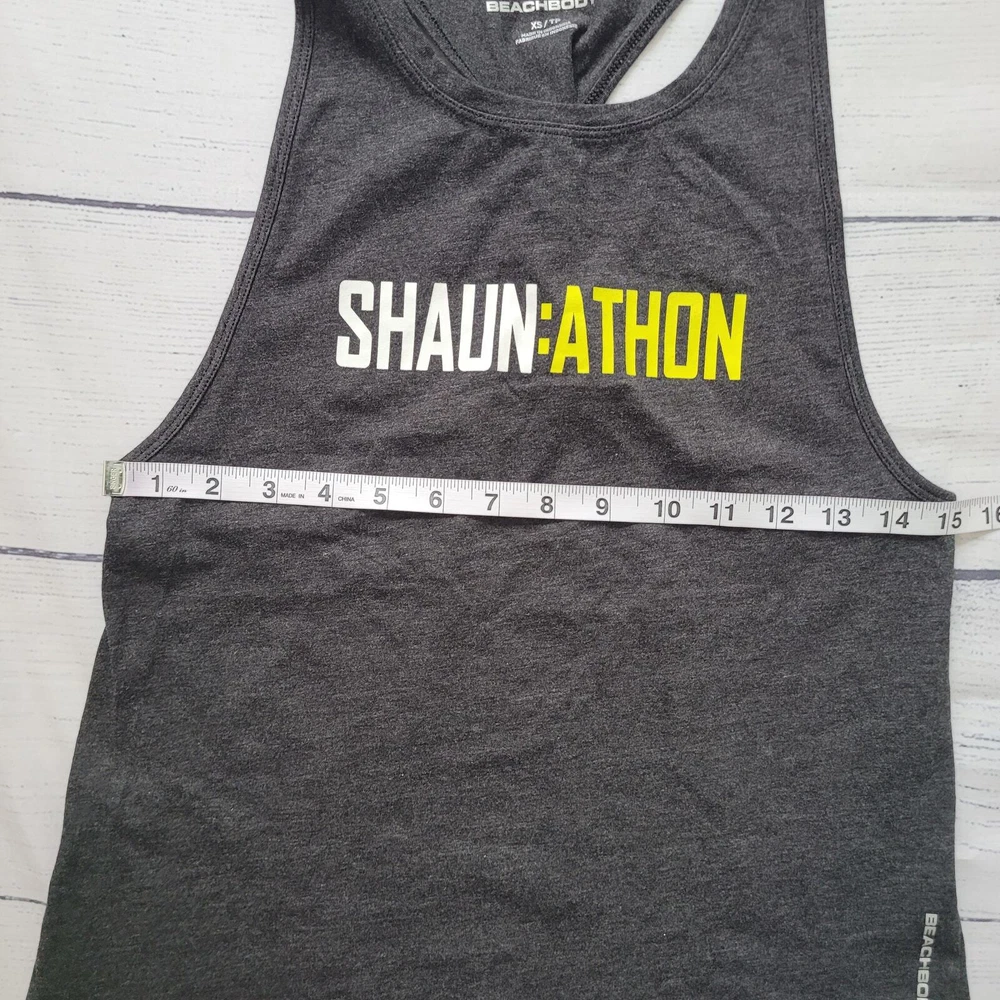 Beachbody Size XS BODI Shaun:Athon Knit Workout Tank Twist Racerback Workout Gym Transform:20 BODI tank top Lightweight Neutral color to go with various workout bottoms Racerback with twist -Excellent, pre-owned condition. No visible stains, flaws or tears. No to minimal signs of previous wear. Measurements included in photos - please inquire if more are needed. All offers considered - make one today!