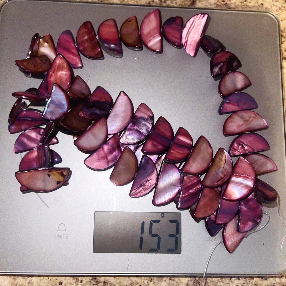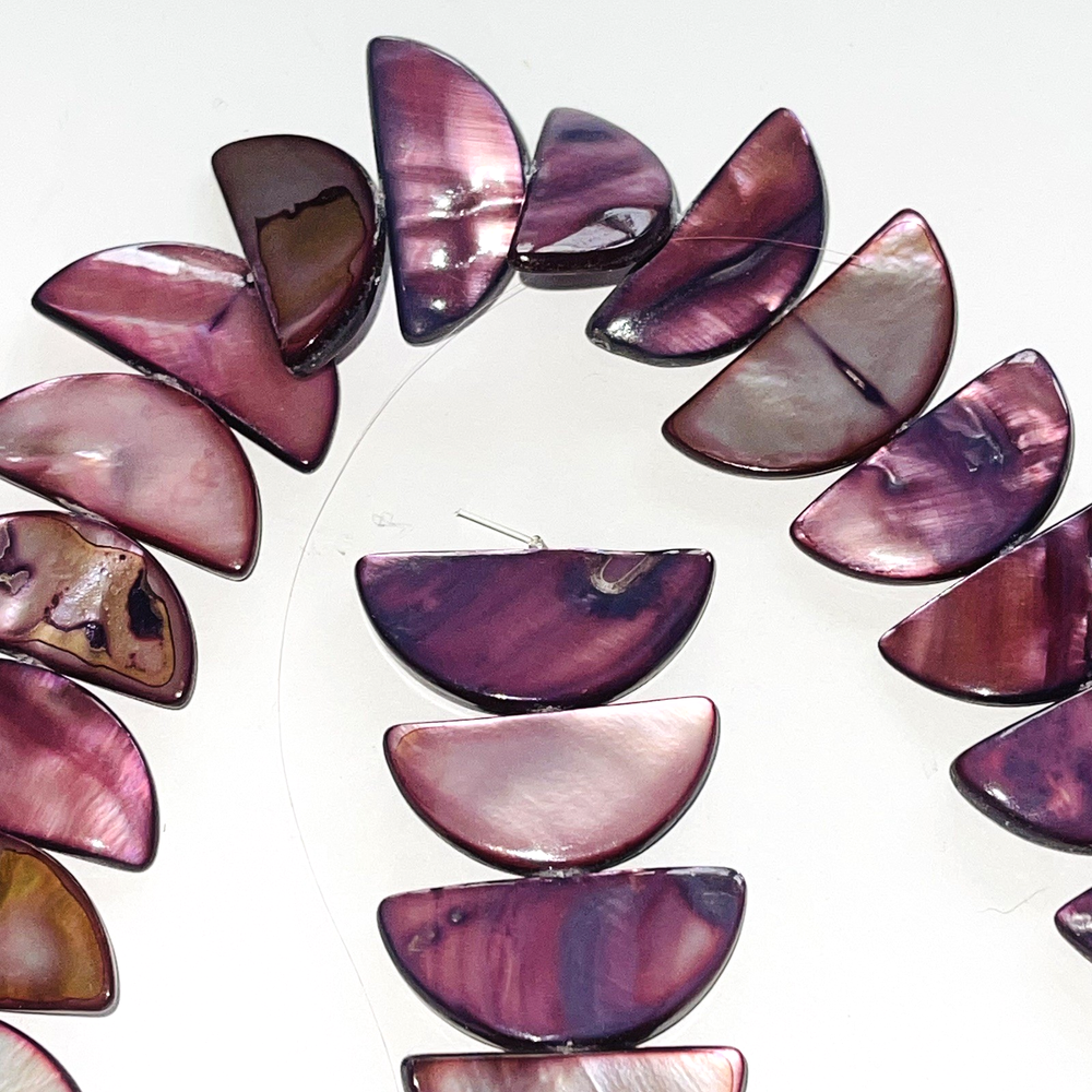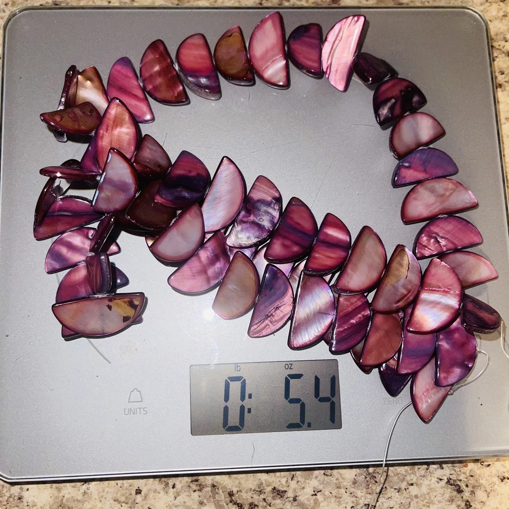 Pretty half moon shaped shell beads dyed pink / purple. Lot includes 2 strands with a total of 58 beads. Nice beads for making jewelry or other crafts. Total weight is 5.4 ounces (153 grams). See photos taken with ruler for more detail on size and added description. Please see photos. Zoom for more detail and assessment of condition. Feel free to contact me with questions. I will create custom bundles & give discounts for purchases of more than one item/listing + combine shipping for extra savings. Quotes provided on request. All sales are final. Returns are not accepted; however your satisfaction is important to me. Please reach out if there is a problem with your purchase. Thanks! PassionatelyCollected I passionately collect things.....