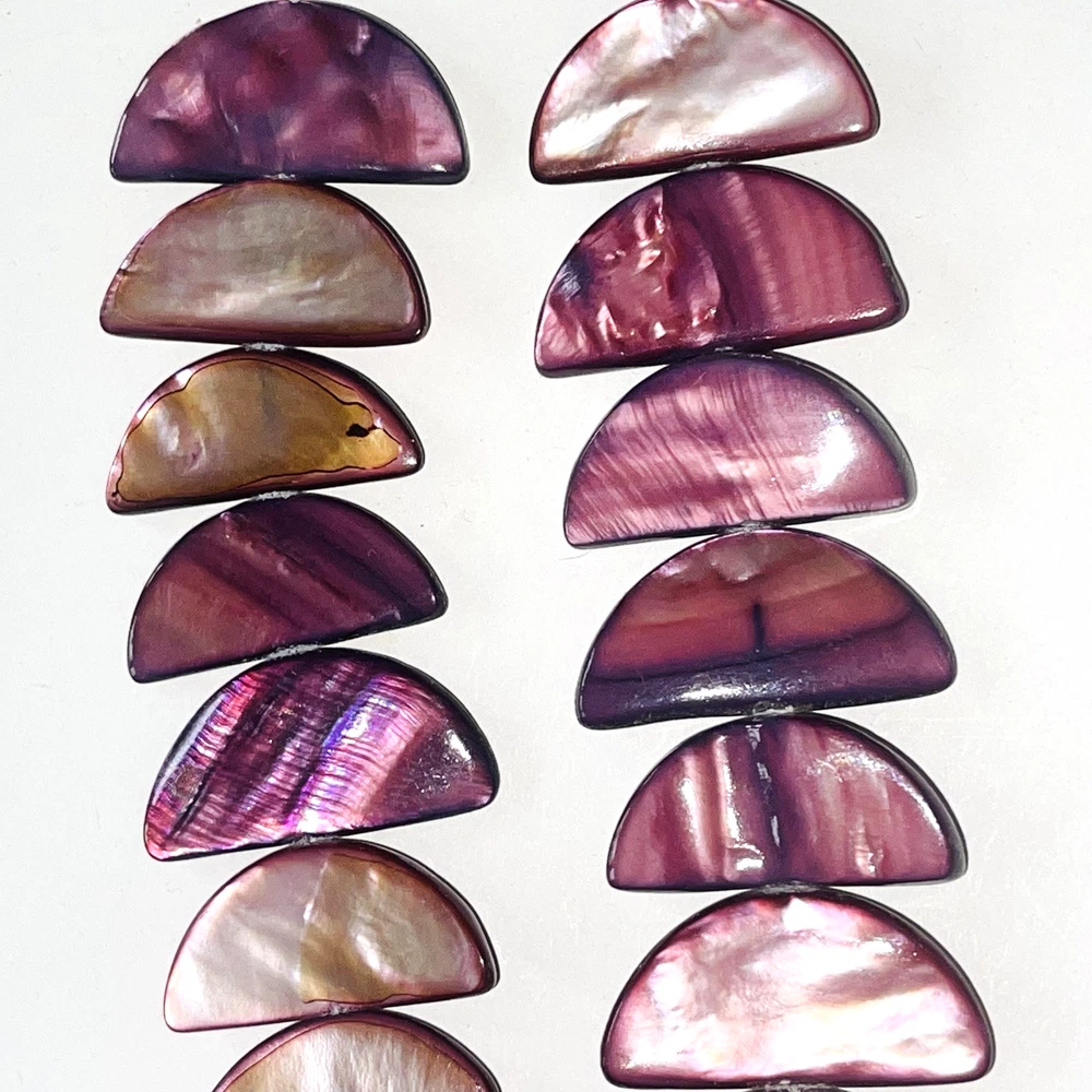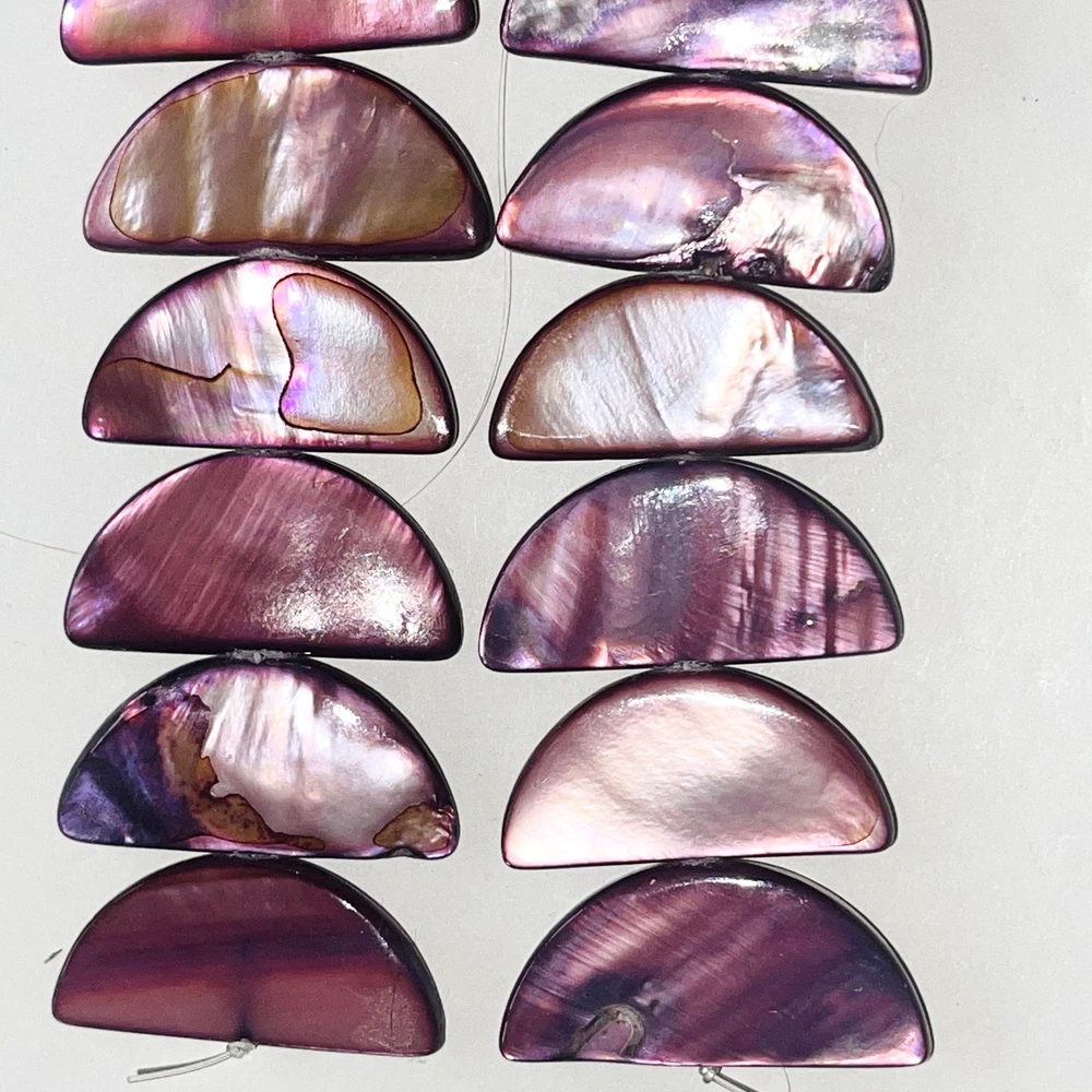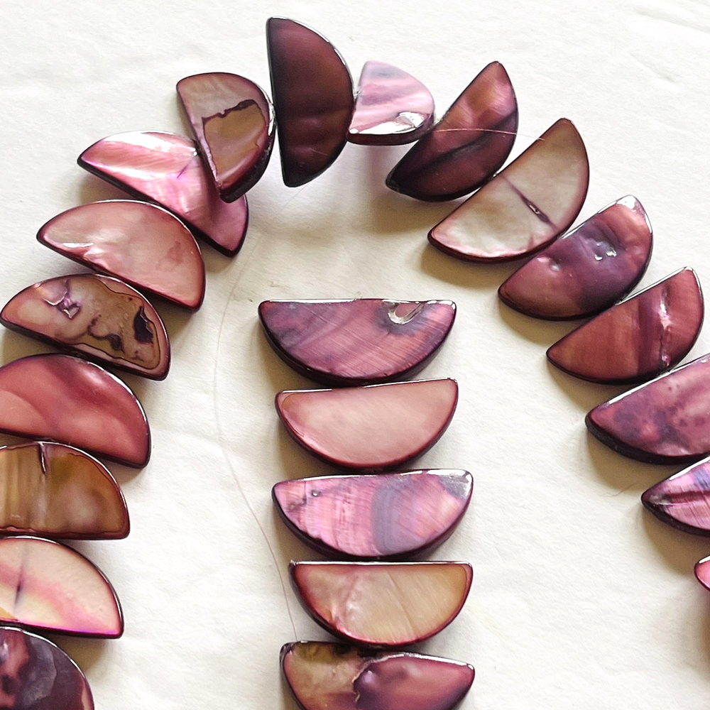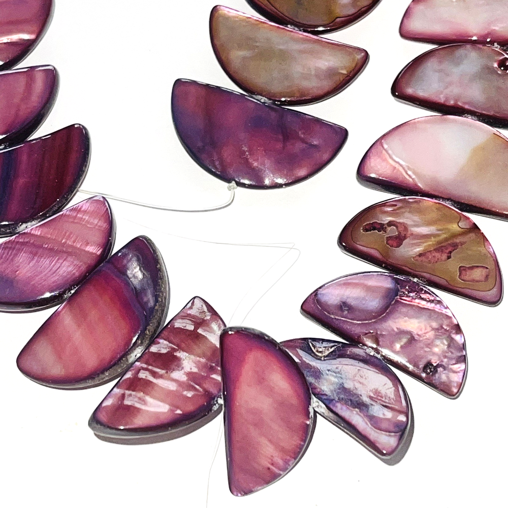 Pretty half moon shaped shell beads dyed pink / purple. Lot includes 2 strands with a total of 58 beads. Nice beads for making jewelry or other crafts. Total weight is 5.4 ounces (153 grams). See photos taken with ruler for more detail on size and added description. Please see photos. Zoom for more detail and assessment of condition. Feel free to contact me with questions. I will create custom bundles & give discounts for purchases of more than one item/listing + combine shipping for extra savings. Quotes provided on request. All sales are final. Returns are not accepted; however your satisfaction is important to me. Please reach out if there is a problem with your purchase. Thanks! PassionatelyCollected I passionately collect things.....