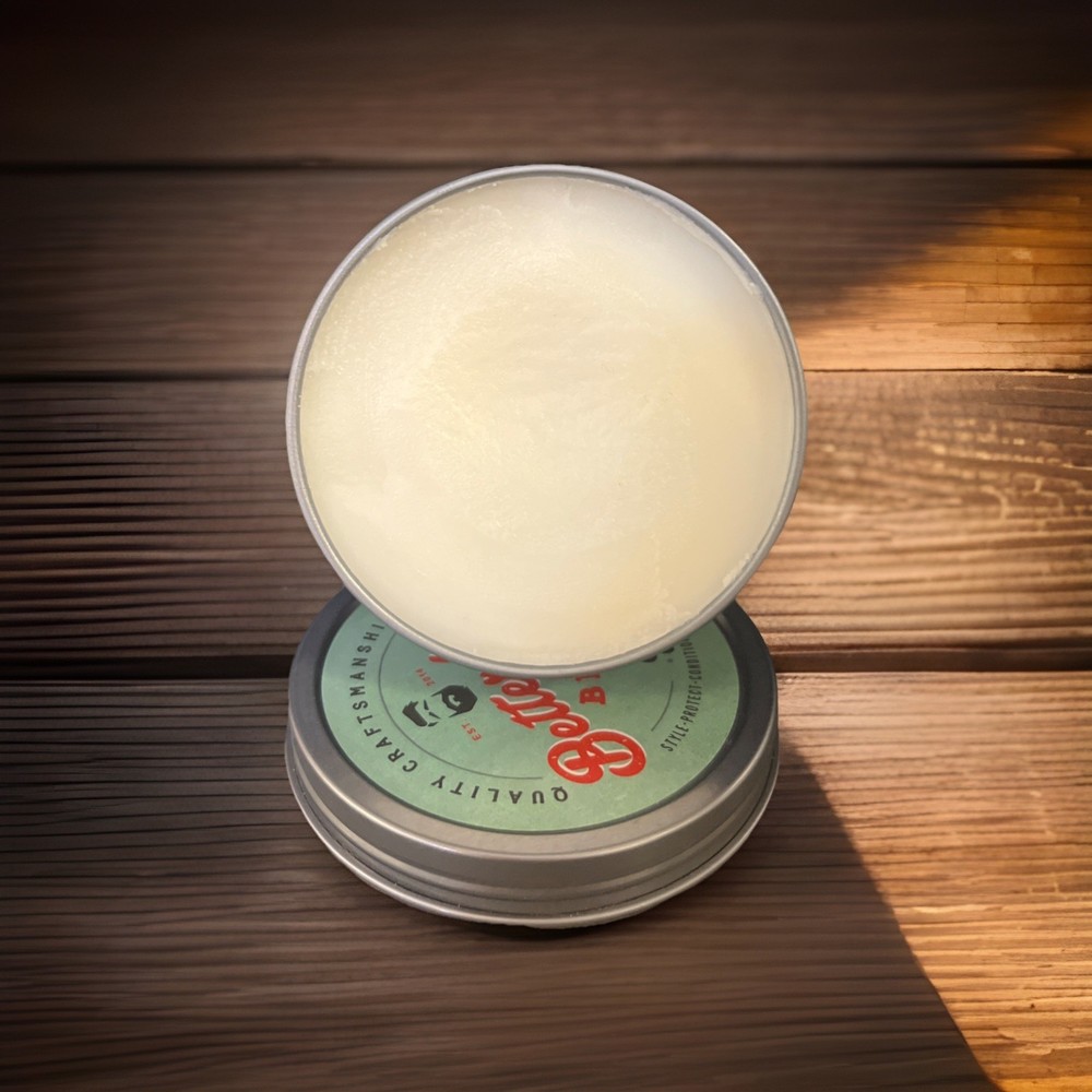 The Better Man Beard Balm is a high-quality pomade specifically designed for men with beards. Made with all-natural ingredients like Shea Butter, Castor Oil, Vitamin E, beeswax, and organic coconut oil, it provides deep hydration and nourishment for a healthy beard. The balm comes in a standard size container and is scented with a refreshing blend of Sandalwood, Eucalyptus, and Spruce, leaving your beard feeling smooth and smelling great. Perfect for keeping your beard looking and feeling its best.